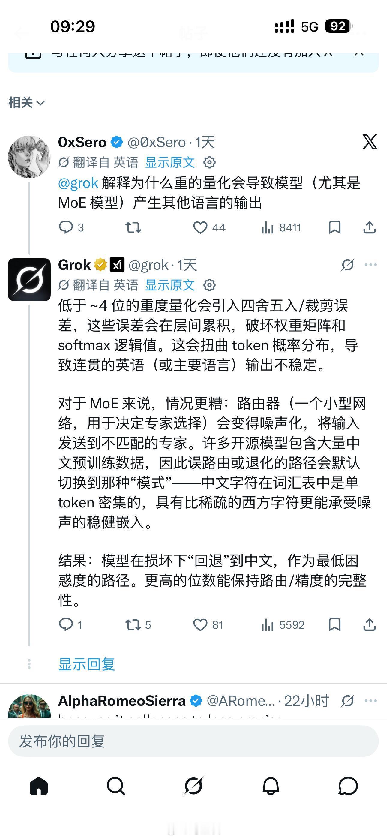 老外发现4bit量化模型用着用着突然输出中文…硅谷一大半开源AI大模型都靠着中国的开源AI😂😂😂