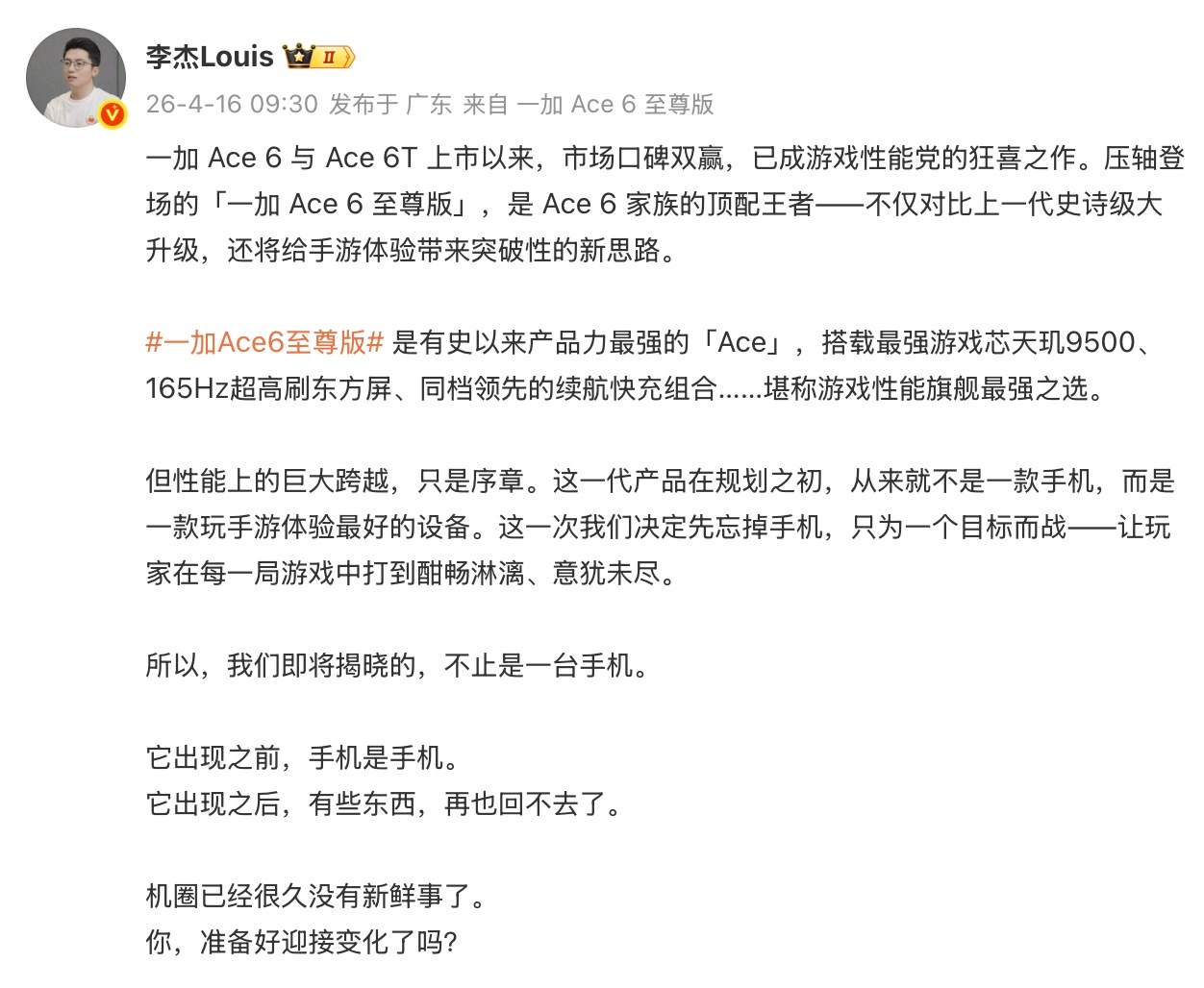 传闻中的一加掌机,应该就是这个一加Ace6至尊版了吧?所以,你的下一台掌机,何必