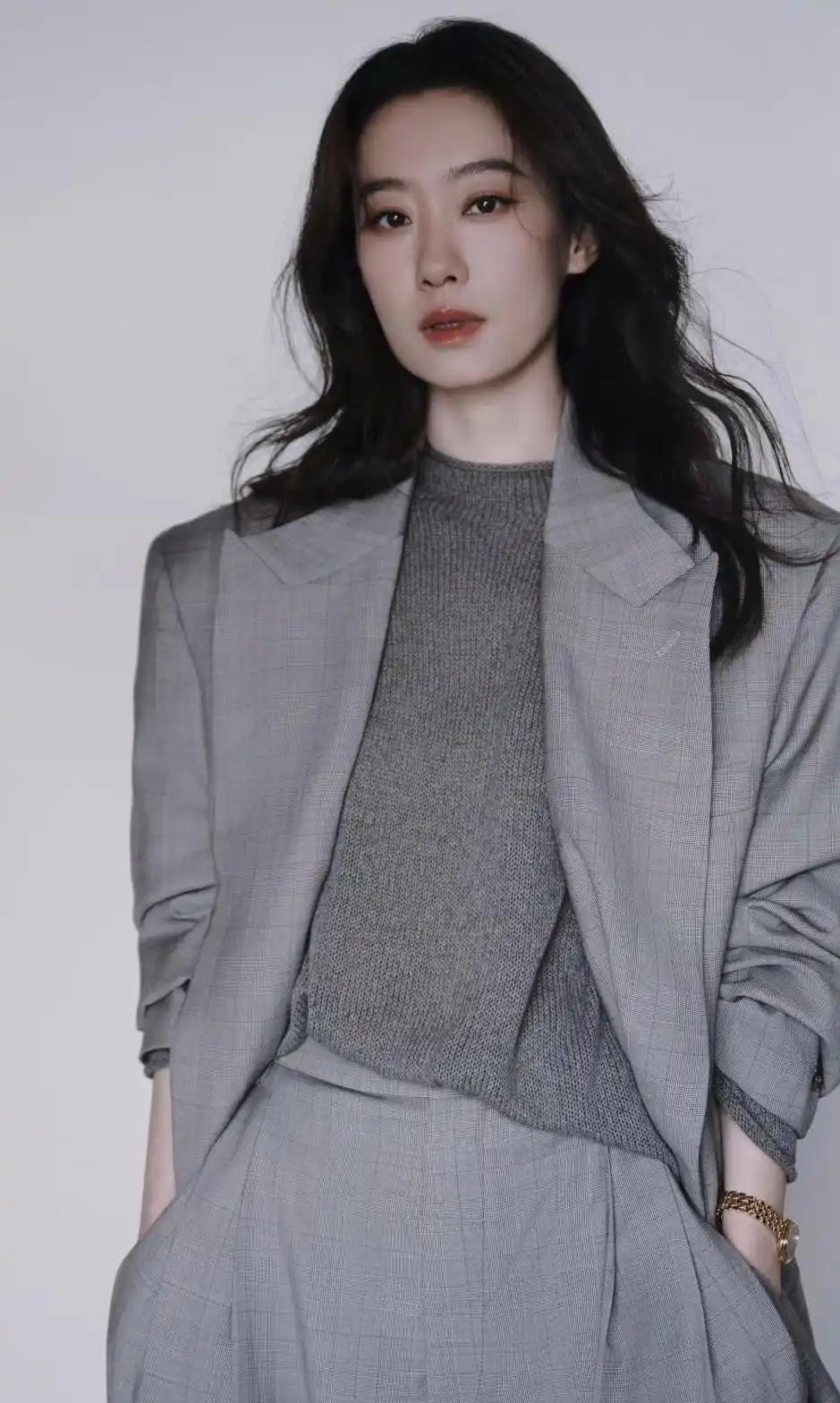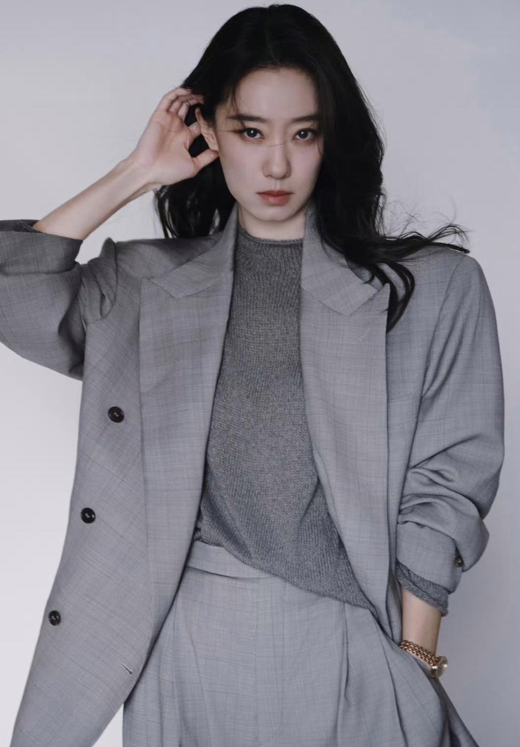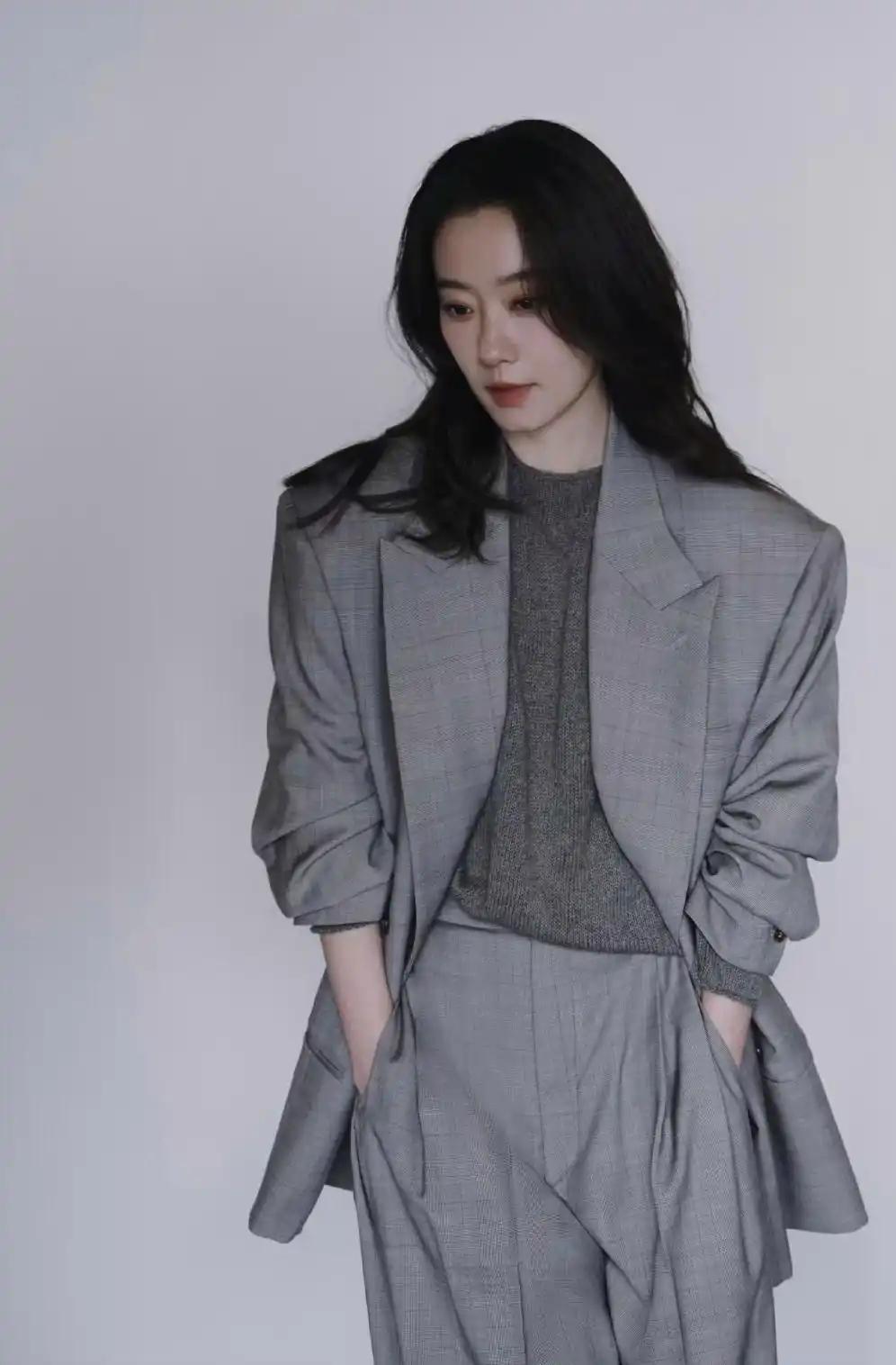 张小斐春季穿搭,深灰色配浅灰色,穿出与众不同的高级感,真好看