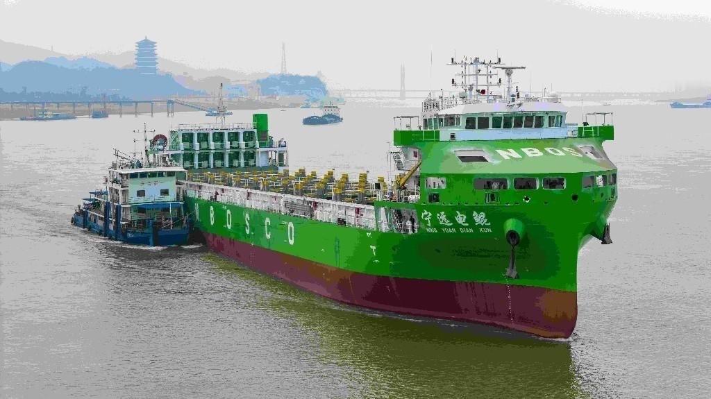 中国首艘也是世界上最大的纯电动集装箱船启航了。