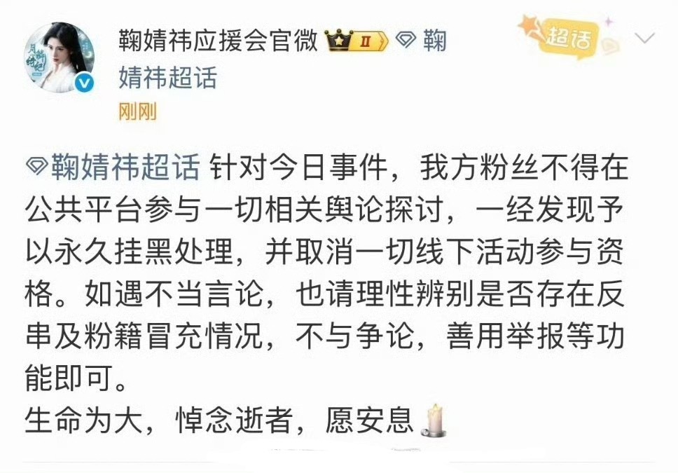丝芭总裁王子杰去世给鞠婧祎粉丝后援会点个赞,挺拎得清的,逝者为大🕯️