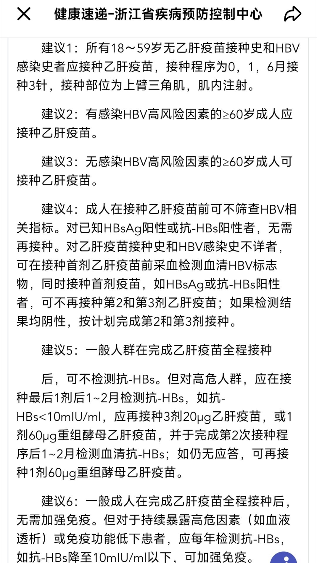 ² 但按照指南,高风险人群例外,比如家里有乙肝病人的,长期相处可能需要打加强针。免疫力特别弱的比如HIV感染者等高风险人群也建议打加强针。还有,很多人密切接触的家属有乙肝病毒携带的,也有必要去测测抗体滴度,然后打一个加强针。⚠️