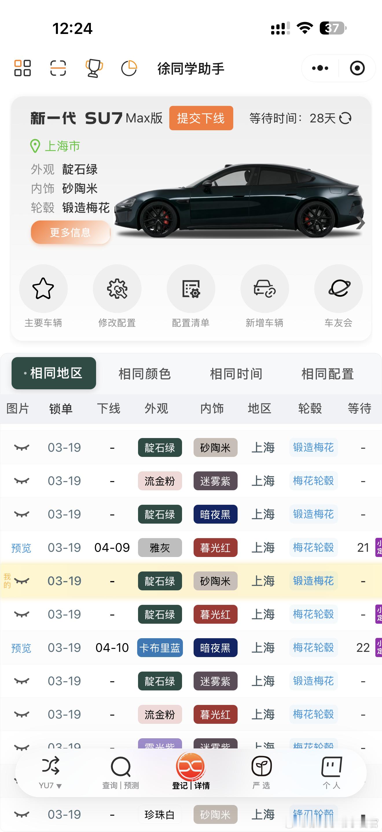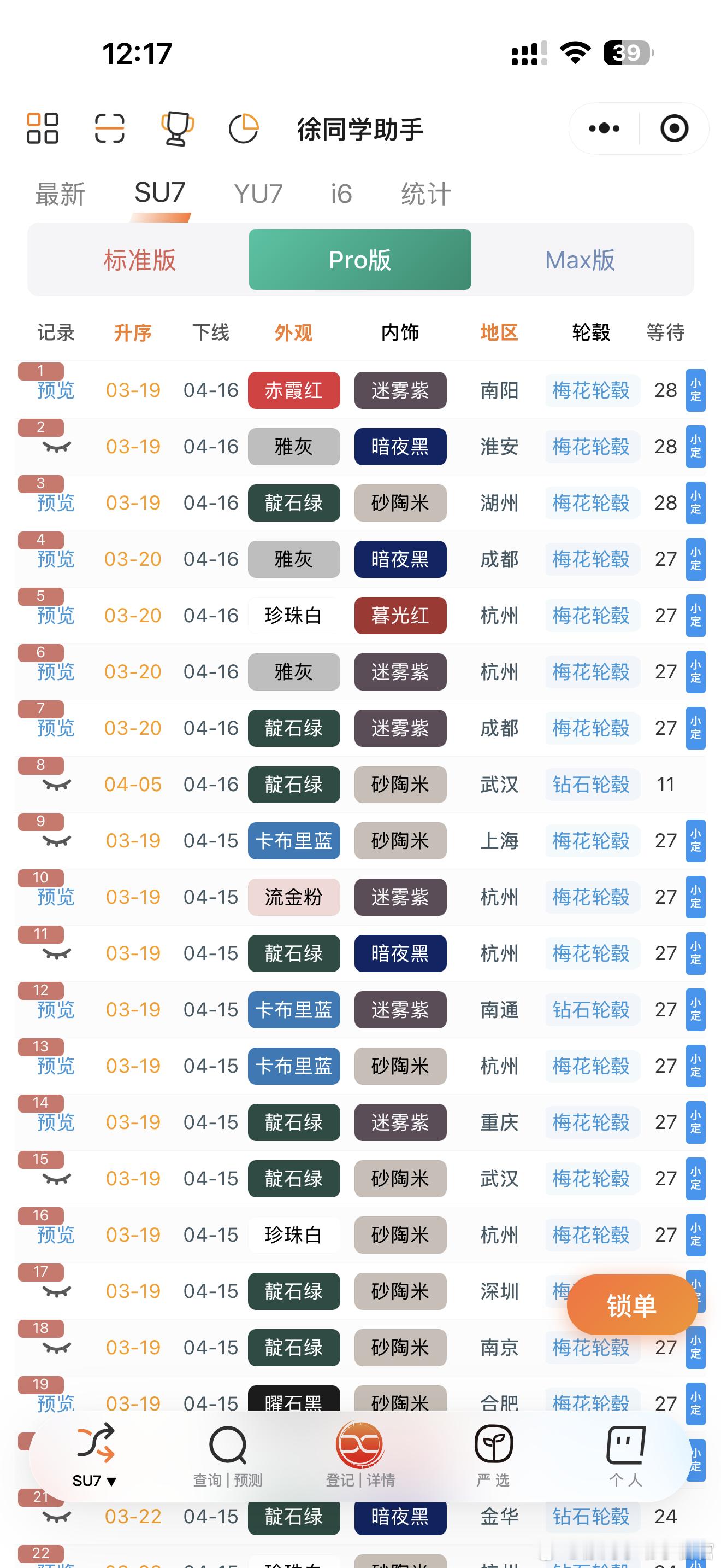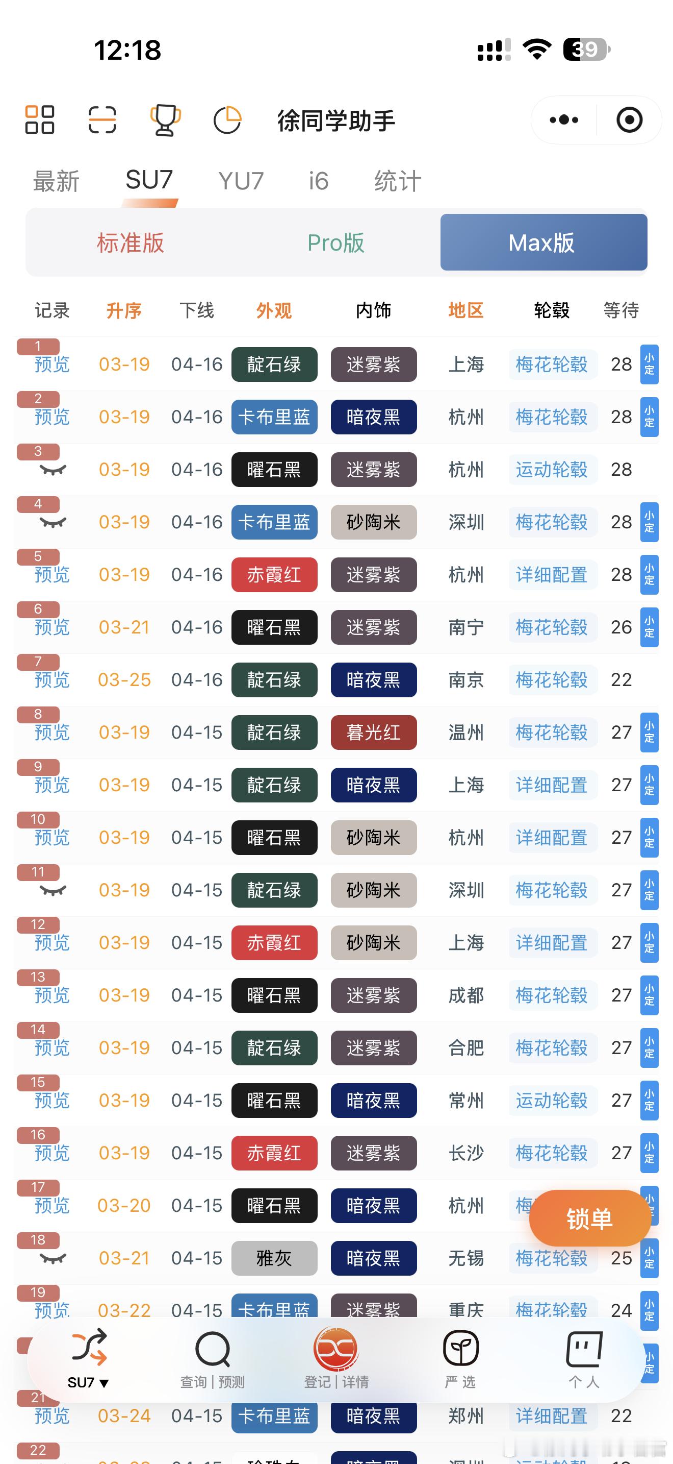 下线进度1️⃣【标准版】下线的以3月20-21日的为主,以钻石轮毂的为主,梅花轮毂还停留在3.19的订单。2️⃣【Pro版】下线的以3.19-20的为主,下线进度慢,大多数都带梅花轮毂。3️⃣【Max版】下线也是以3.19发布会当天的为主,进度确实慢,主要是选梅花的太多,供应紧张。