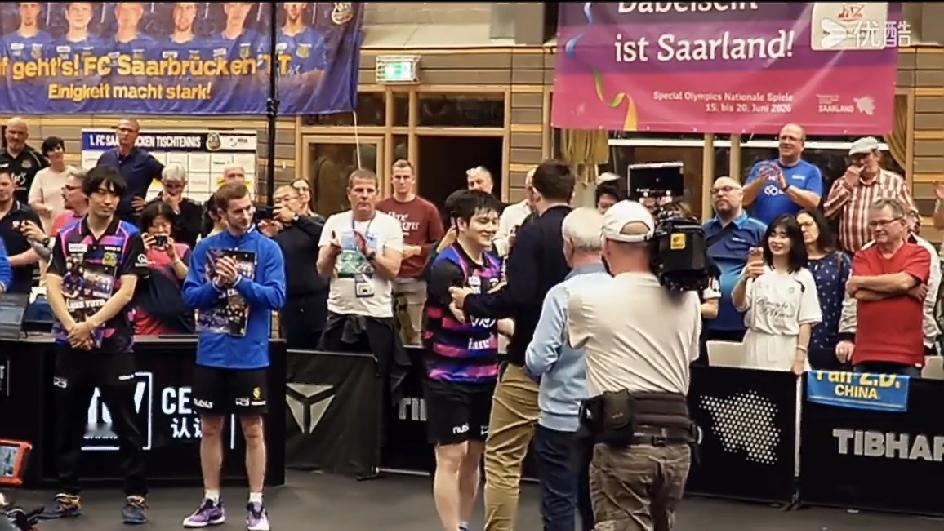 在2026赛季常规赛最后一个主场,萨尔布吕肯队3-1战胜云达不莱梅后,俱乐部为离队球员举办告别仪式。樊振东用英文发表演讲,强调今晚并非告别时刻,而是感谢工作人员和球迷的支持。 “Good evening everyone, tonight is special, but not for goodbye. I'm not sure if I can fully express my emotion in English, but I would like to thank you all, especially our staff and fans who have made many efforts to support us. Let's stay together, trying to make our history for club next month. We are always friends and family. Thank you.” “大家晚上好!今晚很特别,但绝不是告别的时刻。 我不确定自己能否用英文完全表达此刻的心情,但我想衷心感谢在座的各位,尤其是我们的工作人员和粉丝们——是你们付出了无数努力,一路以来给予我们大力支持。 让我们继续携手同行,一起为俱乐部创造属于我们的历史!我们永远是彼此的朋友,也是最亲密的家人。 谢谢大家!” 这,大概就是竞技体育最纯粹的样子。 如果地球是一个大的村庄,没有战争,没有国与国利益的纷争,每个人都能做自己,那该是一件多么美好的事情啊!