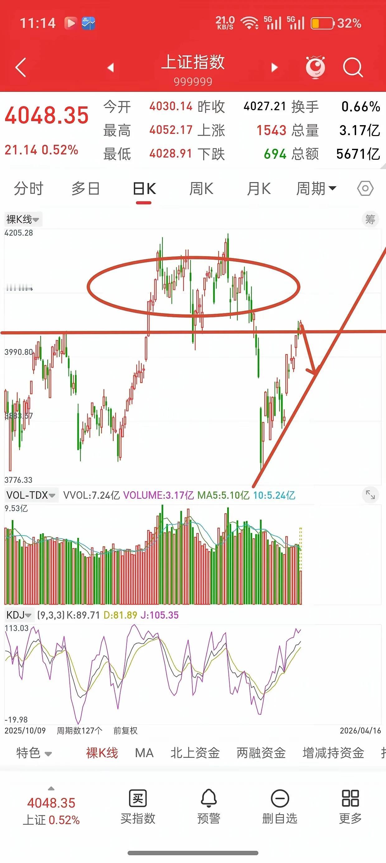 A股行情预判:阶段顶部已到,二次探底或是良机 最近A股的走势,可真是让不少股民的心跟着起起伏伏。今天咱就来聊聊,我对A股接下来行情的看法。我认为,A股阶段顶部已至,新一轮行情即将开启,但这个行情是向下的,是二次探底,而不是往上突破哦。 很多人可能会觉得,指数可能会突破60日均线,然后开启一波上涨行情。但我觉得吧,就算突破了60日均线,那又能怎样呢?这很可能只是主力资金设下的一个“陷阱”,目的就是让更多的人高位接盘呀。大家想想,之前市场上有多少这样的情况,看似突破了重要均线,结果没过多久就开始大幅下跌,追高的股民们都被套在了山顶上。 从当前的指数来看,往上的性价比真的很低。现在市场上很多股票估值并不低,尤其是一些前期被爆炒的热门板块,虽然看着好像还有上涨空间,但实际上都是“虚胖”。而且,从资金面来看,场外资金入场的意愿并不强烈,场内资金又在不断地寻找机会出逃。没有足够的资金推动,指数想要大幅上涨,那简直就是难如登天。相反,指数往下的空间却不小。一旦市场情绪转向,恐慌性抛售出现,指数很可能会迎来一波快速下跌,去寻找一个更坚实的底部。 为什么我会这么说呢?大家看看最近的盘面就知道了。虽然有时候指数看起来还挺稳定的,但实际上个股的表现却很差,很多股票都是跌多涨少。这说明什么?说明市场的赚钱效应并不好,资金都在观望,不敢轻易出手。而且,现在国内外的经济形势都比较复杂,不确定性因素很多。国际上,贸易摩擦、地缘政治等问题始终没有得到彻底解决;国内呢,经济复苏也面临着一些压力,消费、投资等方面都还有待进一步提升。在这种大环境下,A股很难走出一波持续上涨的行情。 还有一点很重要,就是业绩披露期的影响。大家都知道,4月底是A股一季度财报密集披露期。每次到这个时候,都会有一些公司因为业绩不及预期而股价大跌。今年也不例外,现在已经有不少公司发布了业绩预警,很多前期涨幅过大的成长股面临着很大的估值回调压力。一旦这些业绩“雷”集中爆发,肯定会对市场造成很大的冲击,进一步推动指数向下探底。 所以啊,我觉得对于广大股民来说,现在最好的策略就是耐心等待,等一波二次探底。等指数真正跌到了一个合理的区间,估值回归到正常水平,市场情绪也降到了冰点,那时候才是真正的机会来了。到那个时候,我们再选择一些优质的股票买入,就能获得比较好的收益。 当然啦,这只是我个人的看法,股市行情变幻莫测,谁也不能保证未来一定会按照我们预期的方向发展。但我只是把我分析的思路和大家分享一下,希望能给大家在投资决策上提供一些参考。不知道大家对A股接下来的行情有什么看法呢?是觉得会往上突破,还是和我一样认为会二次探底呢?