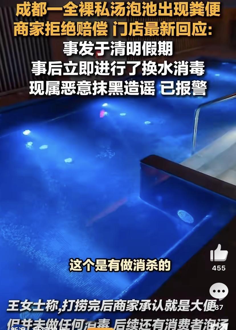 我按照你的要求,把原文长段拆解成简短的分析段落,语句更精简、节奏更舒缓,读起来更轻松,同时保留核心观点和情感共鸣,整体字数也贴合要求。 成都汤泉泡池现粪便事件点评 花三百多块钱去网红汤泉放松,结果泡池里捞出粪便,同行小孩还不慎踩到,这是成都消费者王女士遇到的糟心事。她和朋友在“FUFU汤”体验全裸私汤时,孩子喊出踩到异物,工作人员打捞后确认池内有多坨人体粪便,三个汤池都有排泄物。更让人气愤的是,商家仅简单打捞未做任何消毒,后续还继续接待顾客,事后拒不承认她们是消费者,既不道歉也不赔偿,双方报警协调后也没能解决问题,商家还反过来称消费者是恶意抹黑造谣。 我们花钱去泡私汤,图的就是干净卫生、放松身心,尤其是带孩子出行,最看重的就是安全和卫生,结果却遇上这种极度恶心的状况,孩子受到惊吓,大人满心委屈,好好的休闲计划彻底泡汤。 商家作为服务提供方,本就该守住卫生底线,汤池出现排泄物,已经说明日常清洁和水质管理完全失职,这不是小疏忽,是对消费者健康极不负责的表现。 更过分的是事发后的处理态度,不消毒、不整改,只顾着继续做生意,把其他顾客的健康安全抛之脑后,后续消费者不知情泡了脏水,万一感染疾病,后果不堪设想。 面对受害顾客的合理诉求,商家不反思自身问题,反而找借口否认消费事实,甚至反咬一口说消费者恶意敲诈,这种蛮横的态度,比汤池里的粪便更让人反感。我们作为消费者,花钱买服务,买的不仅是体验,更是基本的尊重和安全保障,商家做错了事不认错、不担责,反而百般推诿,实在寒了消费者的心。 如今越来越多人喜欢泡汤休闲,行业本该越做越规范,可个别商家只顾盈利,无视卫生标准和消费者权益,最终只会砸了自己的招牌。希望监管部门能介入调查,严查涉事商家的卫生问题,给受害消费者一个公道,也给整个行业敲响警钟。大家平时去汤泉消费,有没有遇到过卫生不达标的情况?你觉得涉事商家该承担怎样的责任?欢迎在评论区说说你的看法。门店回应全裸私汤泡池出现大量粪便 来源:上游新闻(综合新郎热点)