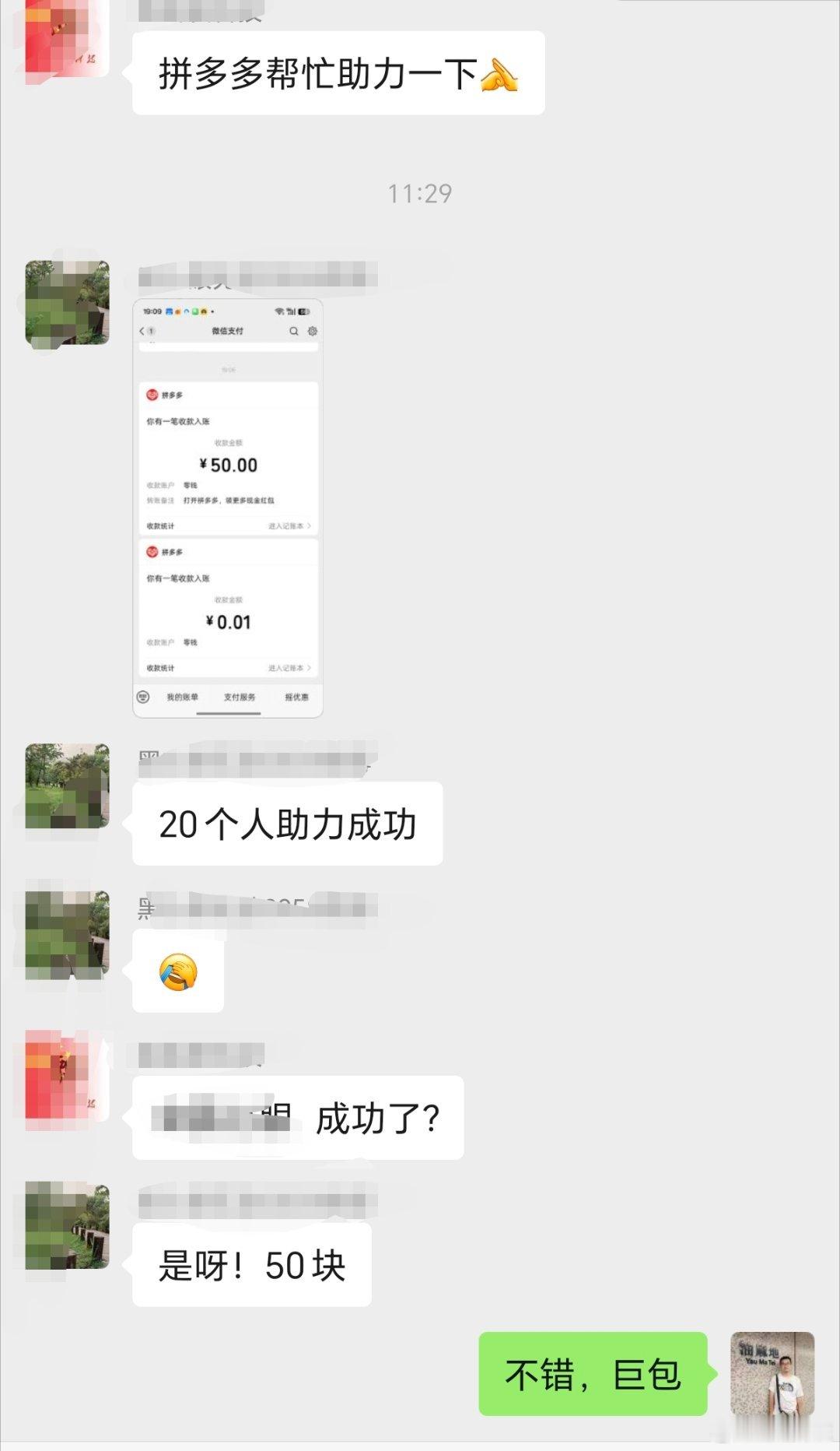 刚看到又有群友拼多多助力得到大红包了,虽然我从来没成功过,但是还是由衷的替领到大