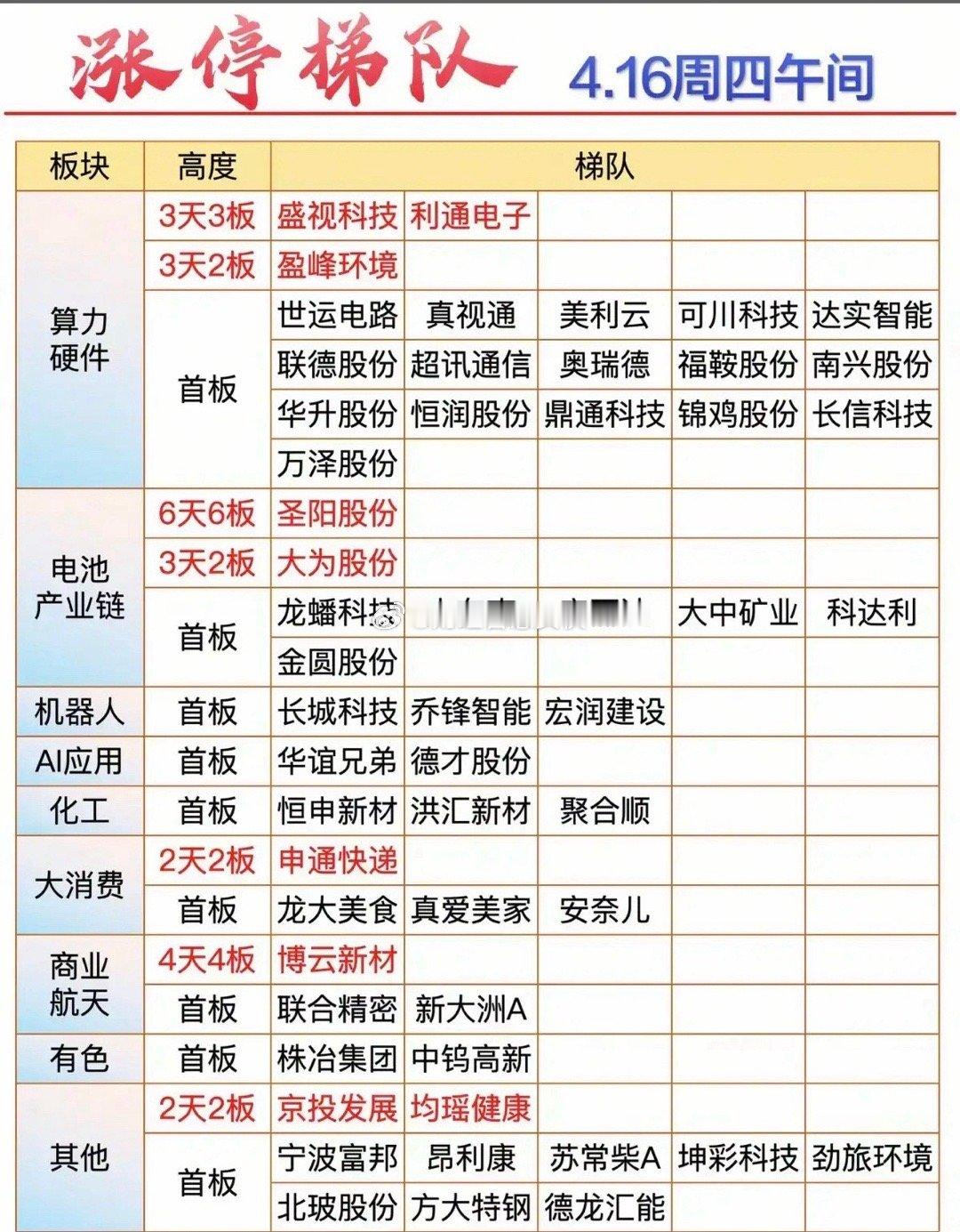 4.16周四 涨停板股票:题材+高度!
