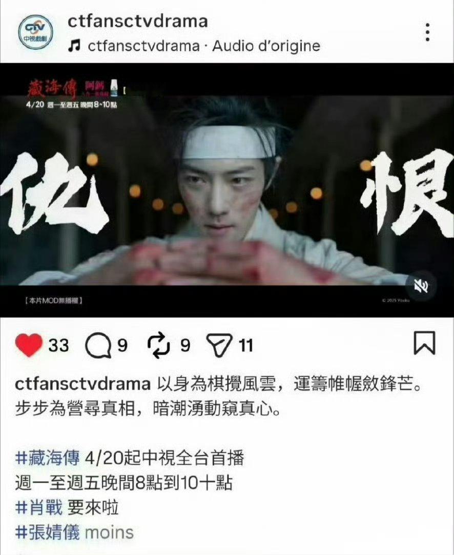 肖战《藏海传》登台湾中视全台黄金档,中视已置顶们藏海传夯爆了!!