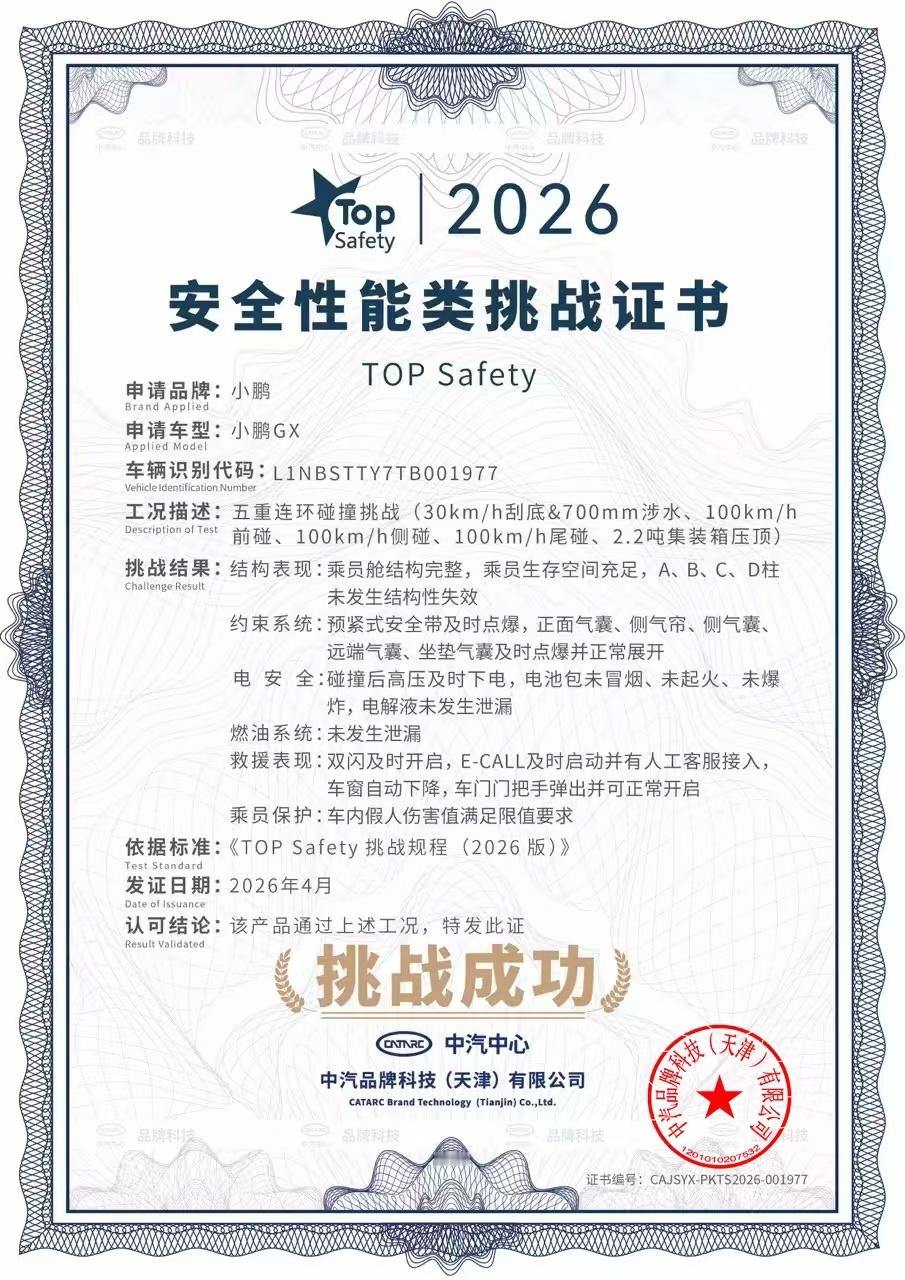 而这场测试,就是把这些我们能想到的最坏情况,全串在了一起,给车做了一轮五重极限连环考验。小鹏GX全程测下来,车身结构没失效,电池包没出任何异常,所有车门都能正常打开小鹏GX成功 挑战720°五重连环碰撞央视点赞小 鹏GX首发航空级安全冗余