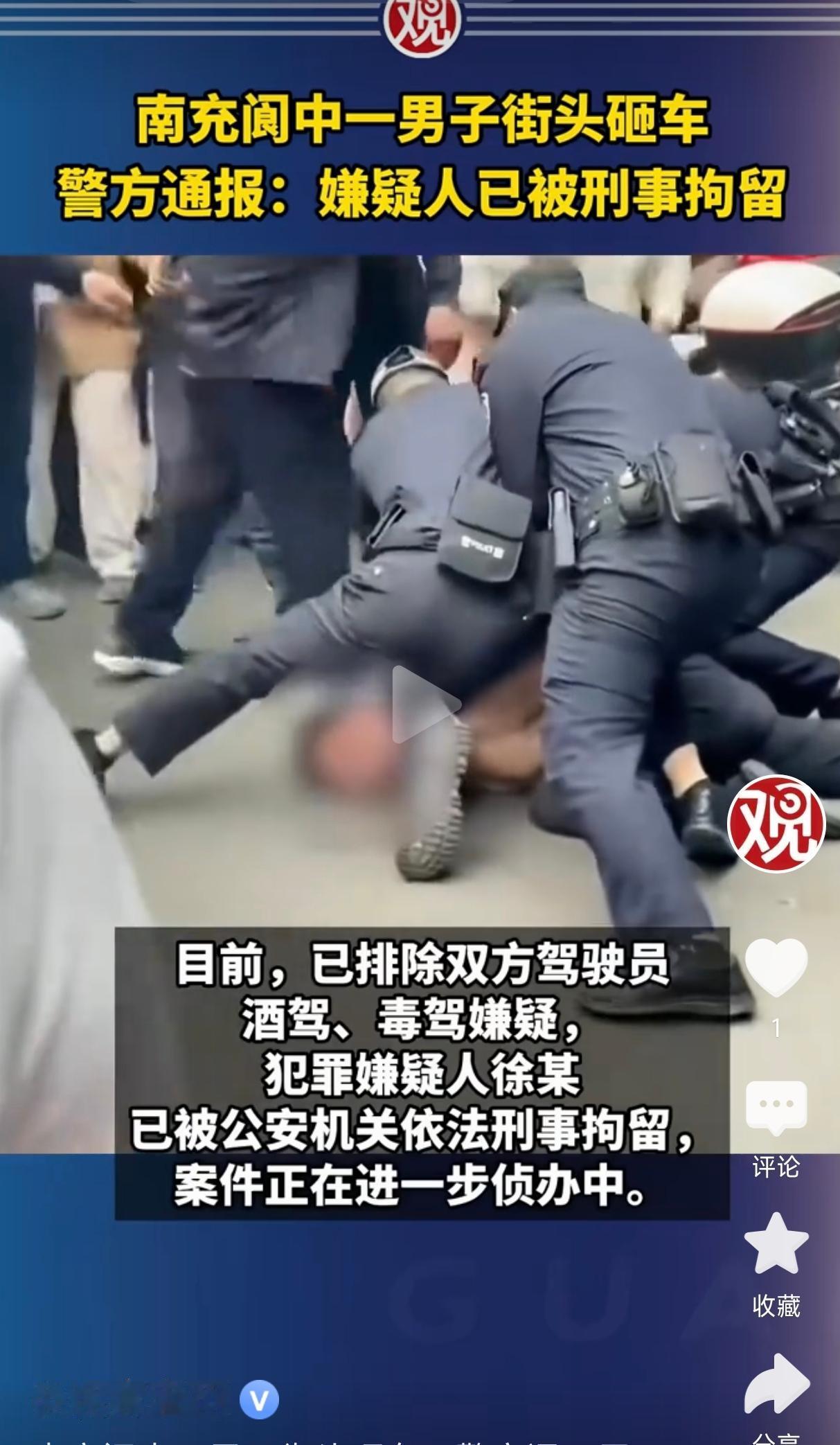 四川阆中警方通报称,2026年4月15日17时许,阆中市公安局接群众报警,称顾家井巷附近有人打砸小轿车。接警后,民警迅速赶赴现场处置。经调查,涉事摩托车主徐某因涉嫌故意损毁财物,已被警方依法刑事拘留。案件正在进一步处理中。车辆遭打砸