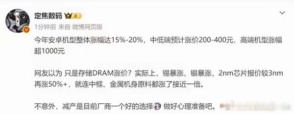 现在怎么没有手机厂商跳出来摘桃子说自己有能力“把价格打下来”呀?以前那股吹牛哔劲儿呢?一个个都装死是吧……