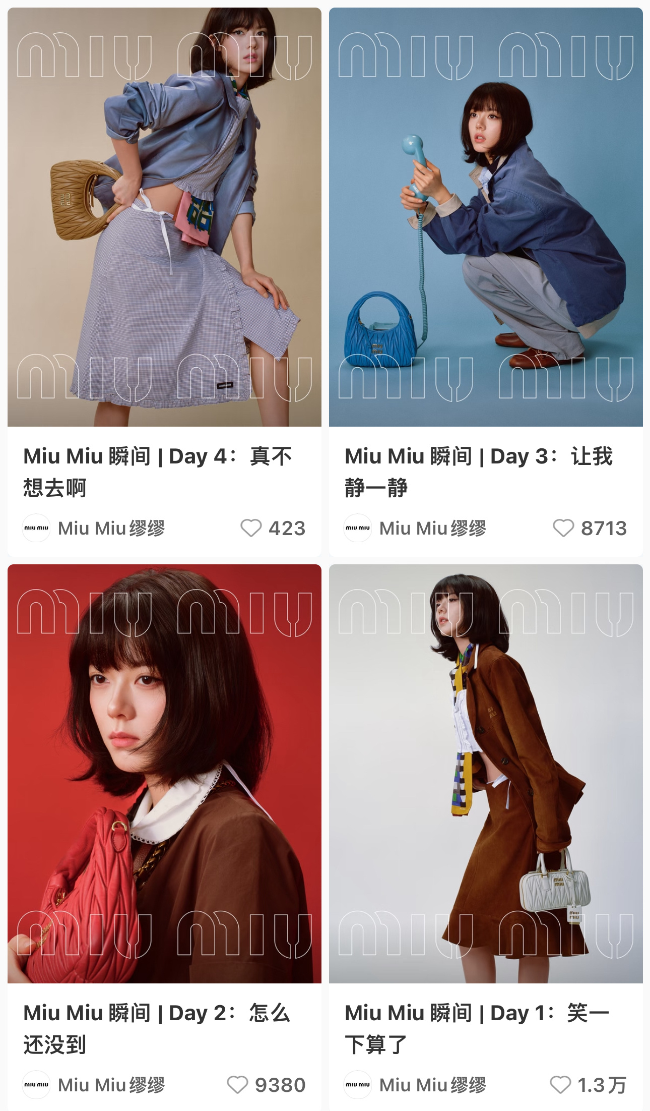 miumiu发的赵今麦第三天昨天是红色系今天是蓝色系文案也很有意思【所有人请勿打