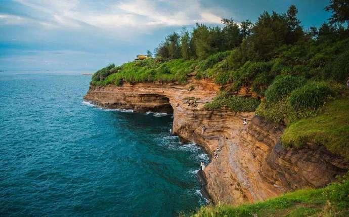 涠洲岛是中国最大的死火山岛,岛上岩奇洞深,风光旖旎,民风淳朴,素有“大蓬莱”仙岛之称。景观资源丰富,有滴水丹屏、鳄鱼山火山公园,五彩滩等,观赏太阳斜照在斜阳岛的全景的最佳地点。岛上现还建有各种娱乐设施,是海岛探幽、海上垂钓、浴海拾贝、潜水探奇的极好去处。