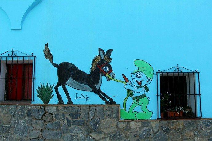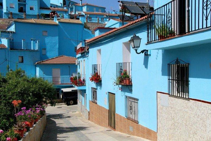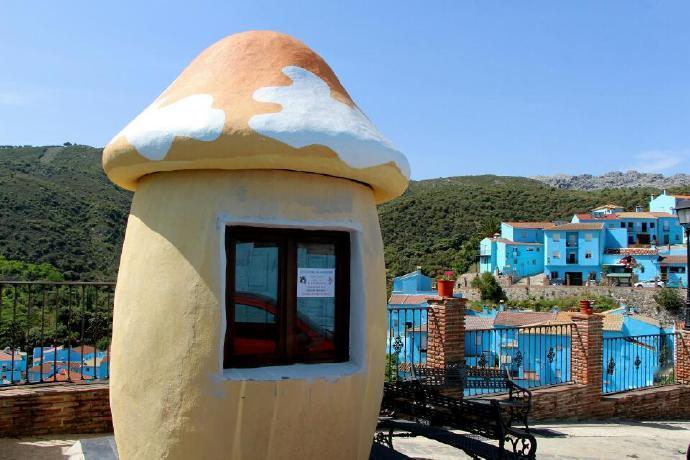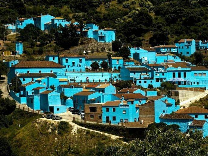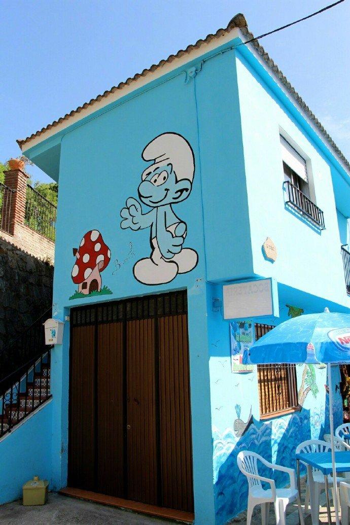 西班牙juzcar蓝精灵村,小镇所有建筑都是蓝色,到处可见蓝精灵元素。