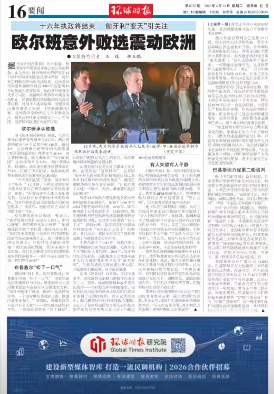 环时说欧尔班“意外败选”。不对吧,去年底以来,历次民调,欧尔班都低于其竞争对手,败选是心知肚明的共识,怎么是“意外”呢。环时太令人意外了。