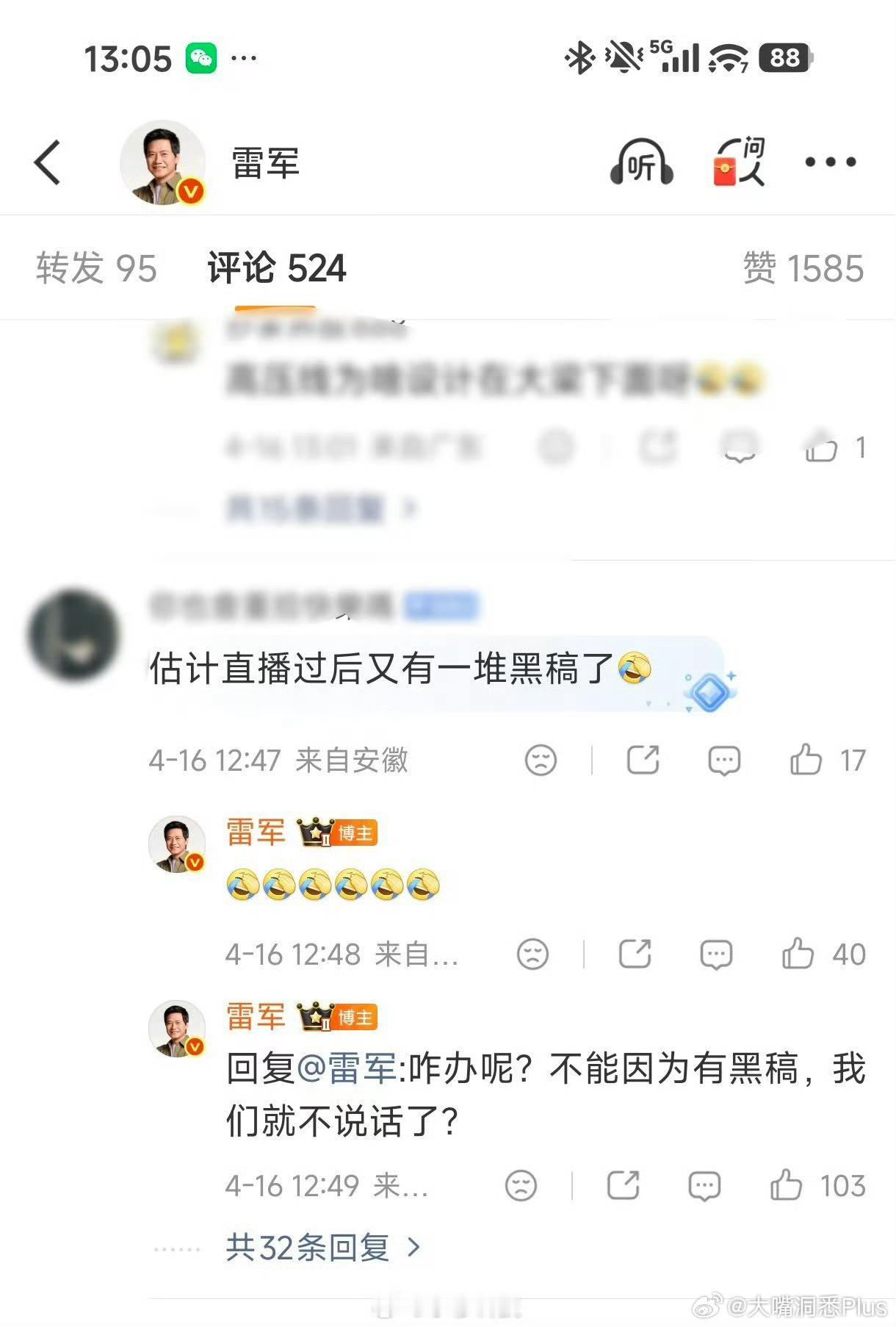 雷军回应粉丝,直播过后估计又有一堆黑稿了:咋办呢?不能因为有黑稿,我们就不说话了?