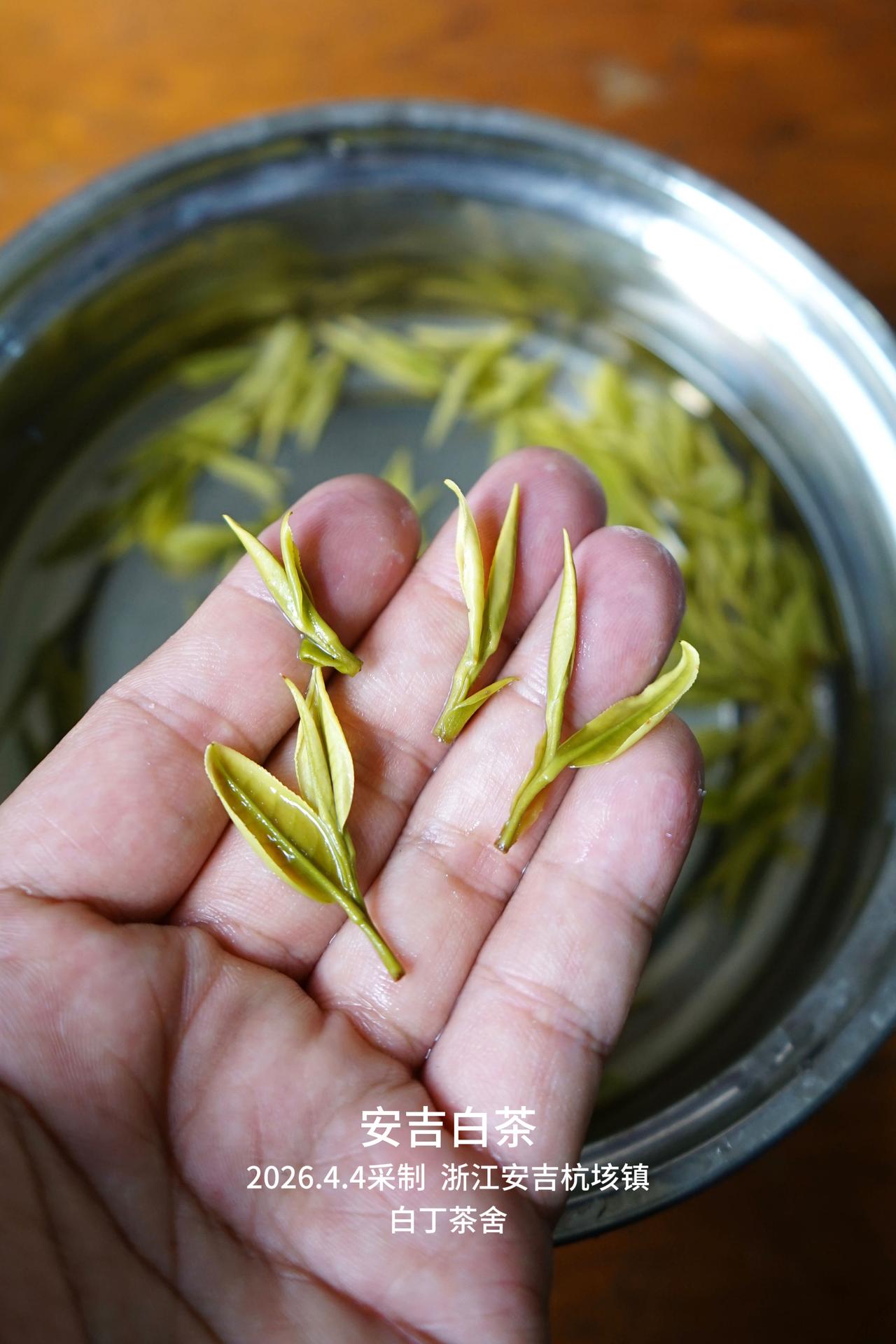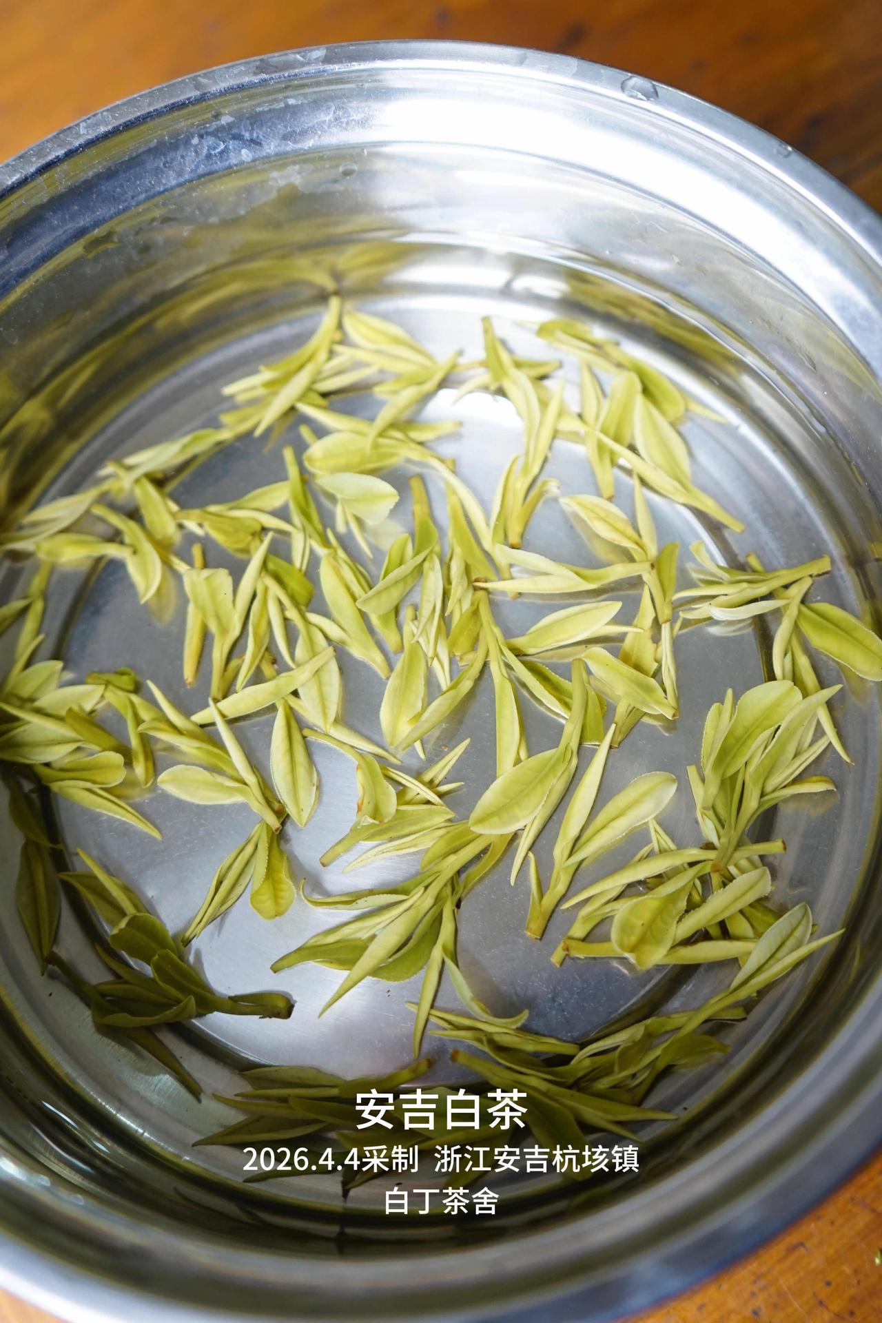 2026高性价比的(明前)安吉白茶,刚烘好。 4月4日的茶炒好了,4月5日刚足烘好。 叶子刚开始张开,芽头还肥,嫩。 我用100℃水冲泡,温杯幽甜香,玉米须香,冲泡有甜香,喝起来甜润,清爽,好喝。 优点:叶子小,有头芽,显肥,颜色嫩黄,滋味清甜; 缺点:叶子张开,腿开始长起来。 预测:今日升温,后来会越来越大,叶子也会变绿,滋味变重 320半斤[呲牙][比心] 2026年安吉白茶(明前茶)250克500克
