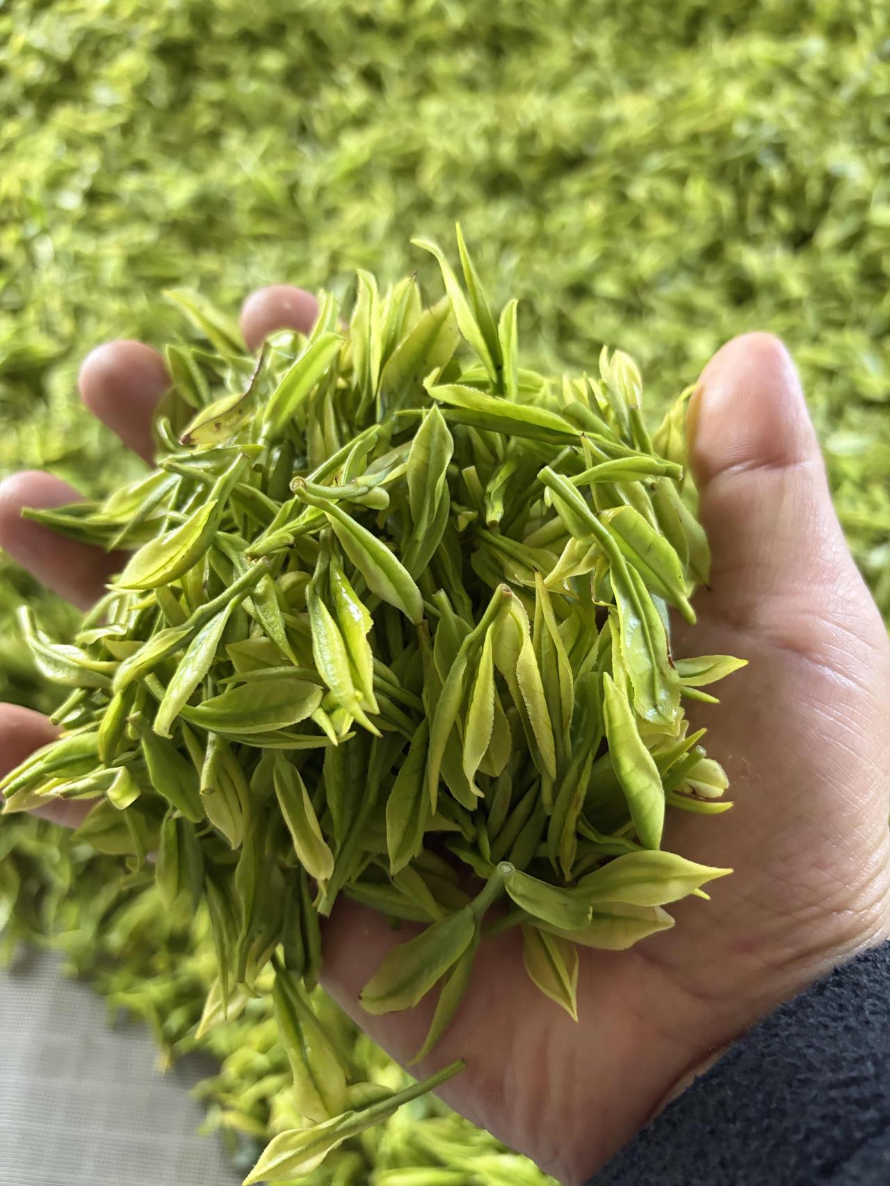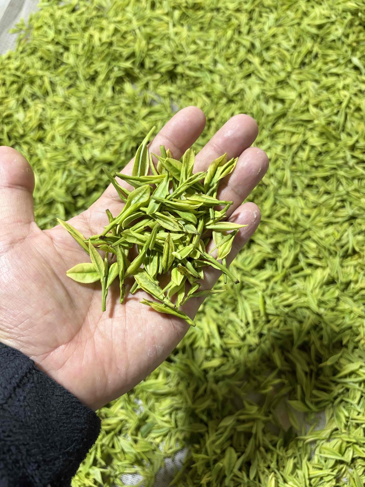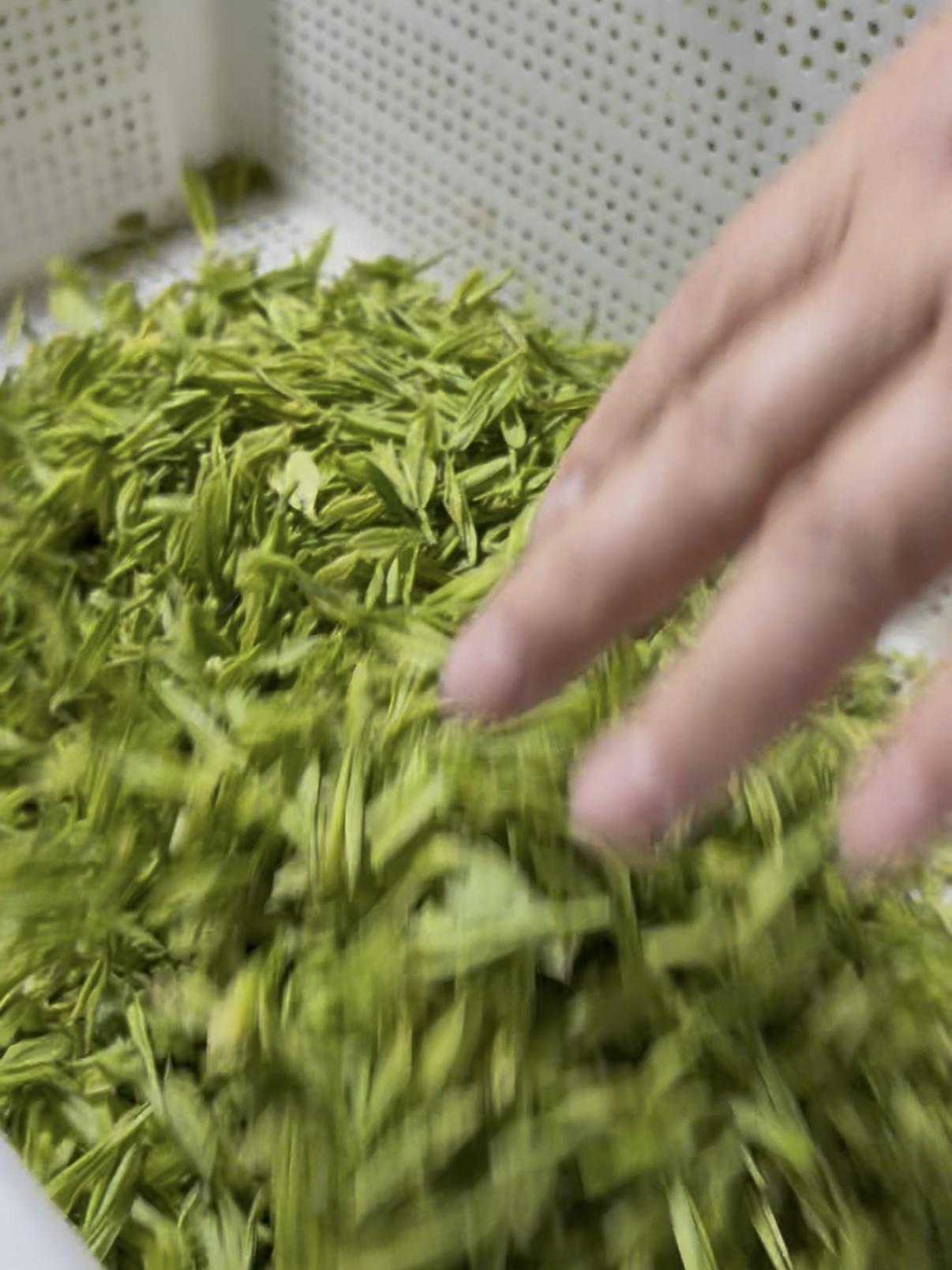 下午开车,从村里小路上了800米的高山, 在章里古道顶端,这里有片安吉白茶园, 山顶水汽足,空山不见人,但闻人语响。 我们采的算晚的,这里海拔800米过了清明才开采, 我们结束了,这里的青叶还很小[呲牙] 拿了5斤青叶,做了一斤多点小白龙, 手工刚辉完,滋味挺不错[比心]