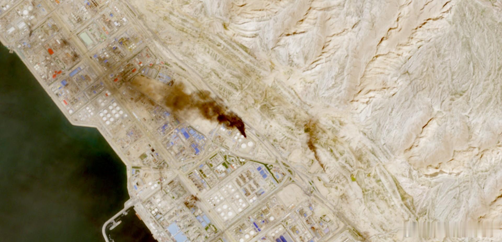 伊朗伊朗阿萨鲁耶的石化工厂卫星图像,黑烟滚滚中东局势伊朗公布战损
