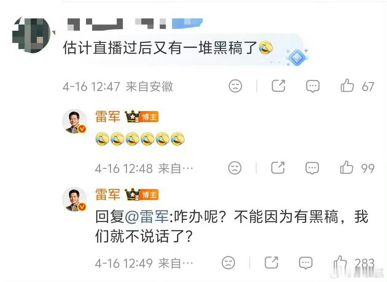 雷军再回应小米黑稿雷总心态确实挺好,不愧是一路厮杀出来的企业大佬。其实国内现在的舆论环境,干啥都是刀尖舔血步步惊心,真的不容易。