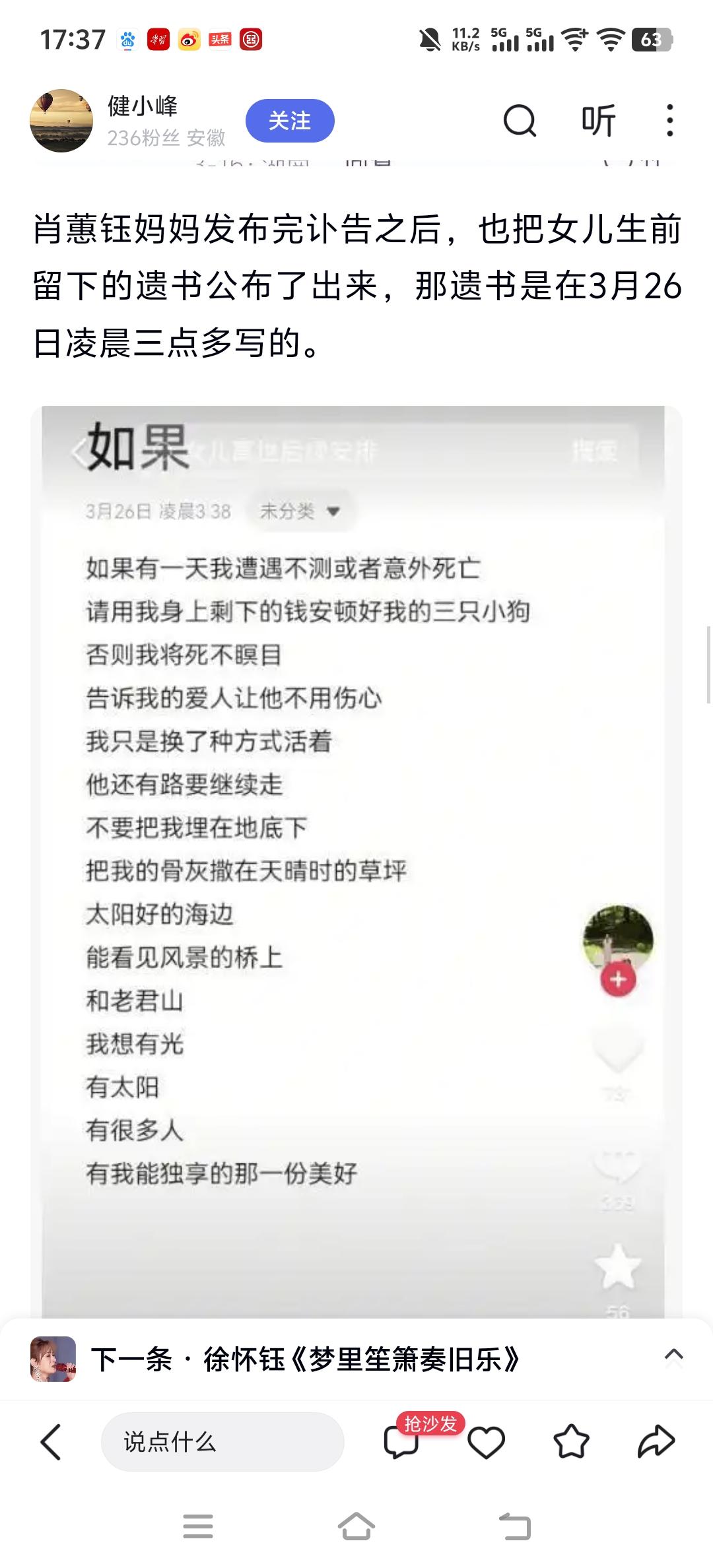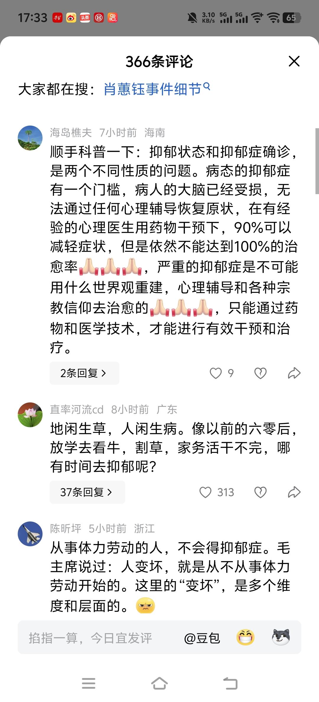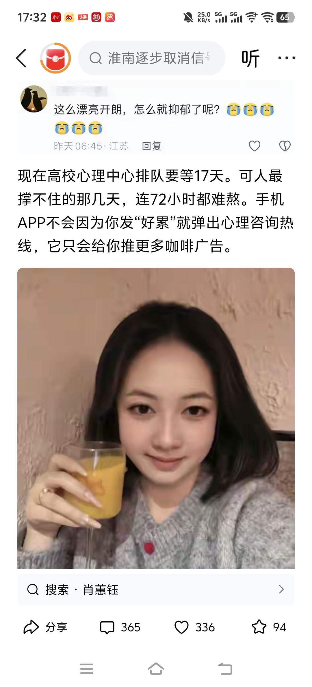 社交的本质是利人利己,幸福只在于内求 (以下是聊天口述,录音语音转换,稍加修改) 有一个人给我发了一个面相,问这个人有没有这种年轻会走的可能,因为21岁就自己选择离开了人间。 我看了一下整体面相,看出这个女孩子是一个完美主义者,对外在事物有非常美好的想象,追求的不是物质,而情感方面的价值反而比物质更难获得。 完美主义者更多的是想把自己经历的人和事都往最美好的去想象,比如看一个电视剧,就很希望这是一个美好的结局。 小时候我们看的7个小矮人帮着白雪公主实现了他美好的生活,有遇到了白马王子,那为什么后面这个童话故事就不写了呢,作者也觉得没法写,白马王子跟白雪公主在后面的生活中一定会经历生活中的各种琐事,呃,如生孩子呃,包括抚养孩子,遇到各种可能性,不会那么完美,戛然而止就停住,给读者们一个交代。 完美主义者并不是这样,会希望把所有的东西理想化。 我曾经也是一个完美主义者,对考试有一种痴迷感,一定要考多少多少分,还有做事情要做到别人都满意,但是你想做到别人满意,这本身就是一个伪命题。你做任何事都有人满意跟不满意,而我当时也容易陷入一种自我怀疑,会觉得是不是不够优秀,所以别人不满意。如做销售没有成绩,忽略了整个大的环境、这个行业,再看周围的这些同事是什么状态,不全是你的问题。可是完美主义只会把这一切归咎在自己身上,否定自己,这时候就不快乐。 那现在回到这个女孩子的面相,她的面相额头来看非常不错,所以她应该是受过不错的环境的熏陶,在小时候应该是得到过家人的关爱。眼神是非常忧郁,眼神是内心的窗户,说明他在看待这个世界的一些观点偏向于悲观。我也偏悲观,是那个乐观的悲观主义,我经常这样讲,是学习尼采的思想,做一个乐观的悲观主义者,在悲观中发现积极乐观都点。 这个女孩子她很多时候应该是偏向于比较悲观,也可能是绝对的悲观,眼神没有光。我在你发之后看了一些她旅游的照片,她很希望通过外在旅游让自己的内在变得更加有动力生活下去,实际上旅游并不能让人真正做到自在,美一定需要有发现美的心灵和眼睛, 我会通过看书啊,唱歌啊,旅游啊,包括静走啊,打坐啊这诸多的形式让自己的心沉淀下来。确实也觉得在对治抑郁的情绪时可能宗教这一块的作用是最大的,不过并非每一个人都能够去相信和学习宗教好的文化,习惯性去看到宗教传播中的负面影响。它成为一个文化,成为一个现象,就有多面性的,如果说能够借用宗教,那这个抑郁的情况就很好解决,因为能根本的解决情绪的问题。 心理学多数还是在比较表面的状态里面打转,没有回应灵魂层面的思考,而宗教跟神学它才能回应这个灵魂层面的东西,尤其我觉得东方的哲学,东方的这些宗教文化可能更加直击心性,尤其是像佛教的禅宗及类似的这些文化,中国的这种形而上学的一些东西跟西方的形而上学东西会不同的,东方的文化更多说的是天人感应。 这个女孩子的面相并不是这么年轻就会走的面相。那有人说,那为什么又会出现这种情况呢? 我曾经给我一个好朋友说过一句话,我说我现在的寿命可能是多少多少岁,但是我现在要是从33楼跳下去,肯定会没命,我问他是不是?他说是的,我说那就行了呀,我的本身的寿命如果是78岁或98岁其实并不重要,重要的是现在我不想活了,那我肯定会把生命画上休止符,进入到我生命的终止,这个时候跟你先天的寿数没有绝对关系。 不能光看这个人的先天命运,一定是有各种各样的因素去改善或恶化,也叫不定业中的定业,定业中的不定业,可以转换。 因此来说国运很重要,对吧?它会影响各种行业,影响整个企业,影响我们的家族,也影响我们以个人为单位的小家庭。 人的情绪一定是能够去调节的,改变命运要先改变自己的心态和心境,用一些好的文化和好的思想做引导,接触正能量的人群,那些积极乐观的人,让自己对人生有希望,通过这个层面让自己走出来,好起来,所以算命大家不用太执着于算命的本身,或者看面相的本身,要相信命自我立相由心生,这才是我们学习这个中国传统的周易文化比较有意义的积极的一面。如果认为我已经这样了,反正改不了,何必去改变,那这就是只看到消极的没有意义的一面,离真正的改善人生差得太远。 我们需要社交,只是不能依赖于社交来获得满足感。有价值了自然有朋友,有了钱财,有了地位,也有了去利益众生和回报社会的能力。 少去讨厌人,只是观点不合、缘分不够或尽了;少去思念谁,只是观点相投、缘分深厚。深耕内心,不外求,来的都是有缘的人,走了就无缘和缘尽的人,哪有一个真正不离不弃的人,又哪里会没有了谁就不得了,活不下去。心外求法是攀缘外在和执着外在,找到内心的自己,爱一个人就是祝福和成就,爱一切众生也是如此,爱自己是首要。 祝福所有抑郁不快乐的众生都能回归内心的自我,不假外求,返璞归真。