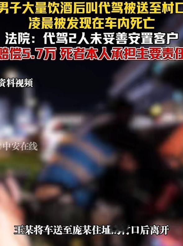 “冤不冤?”河南,一男子喝了不少酒,叫了2个代驾,代驾将男子送到村口后离开,岂料,第二天,男子被发现死在了车里,男子家属悲痛万分,认为是代驾没送到家所致,要求对方赔偿30万,而法院这样判! - 2025年10月12日晚,河南某县城,庞晨东喝完酒叫了代驾,他觉得自己安全了,因为代驾师傅马上就到。 没想到平台派来了两个人,崔海涛带着徒弟王小川赶到现场,崔某让王某开车,庞晨东在后座已经睡得死沉了。 车子一路开到了庞晨东居住的村子口,王小川停下车以后,发现庞晨东醉得像泥,他怎么喊都喊不醒后座上的客。 王小川不知道庞晨东的具体住址,他只能给师傅崔海涛打了一个电话,两人站在深夜路边,商量着接下来该怎么办。 可能是急着去接下一单,也可能是觉得庞晨东睡一会儿就能醒,这两个成年人,竟然选择直接丢下这个乘客走了。 他们没把庞晨东叫醒,也没通知家属或者报警,而是若无其事地继续去跑单,任由这个醉汉独自留在密封车里。 第二天清晨,村民在车里发现了庞晨东,可他已经没有了呼吸,死者家属得知后瞬间崩溃,完全无法接受这结果。 明明花钱叫了代驾,为什么人还会死在村口路边,家属决定起诉索赔,向两位代驾要三十万,理由是严重失职。 经过法院开庭审理,判决结果让不少人感到意外,两位代驾合计担责百分之六,也就是赔偿家属五万七千多元钱。 而去世的庞晨东自己,要承担百分之九十四的主要责任,这个比例划分,在网络上引起了极其巨大的争议讨论。 为什么要这么判决,法官解释,庞晨东作为成年人,过度饮酒导致神志不清,主要责任确实应该由他自己承担。 法律不保护把自己喝到丧失自救能力的人,但判代驾赔钱,是基于附随义务,这是一种合同之外的安全保护。 代驾服务,不只是把车开到目的地,当乘客处于危险状态时,服务者应履行。最低限度的这种保护生命的安全义务。 庞晨东当时叫不醒,这说明他失去了自救能力,代驾作为专业服务人员,把他扔在深夜的路边属于制造了风险。 如果当时能多等一会儿,或者哪怕给家属报个信,悲剧可能就不会发生,他们为了挣钱,选择了冷漠地离开。 百分之六的赔偿比例,给服务行业划出了一条良知的红线,它告诉我们,契约虽然是冷的,但手应该是暖和的。 这起案件给所有人提了个醒,效率固然重要,但面对特殊的客户,请不要吝啬那点时间,那关乎着这一条人命。 契约可以是有温度的,哪怕只是多打一个电话,这种微小的善意,可能就是这个深夜里。唯一的那个救命稻草。