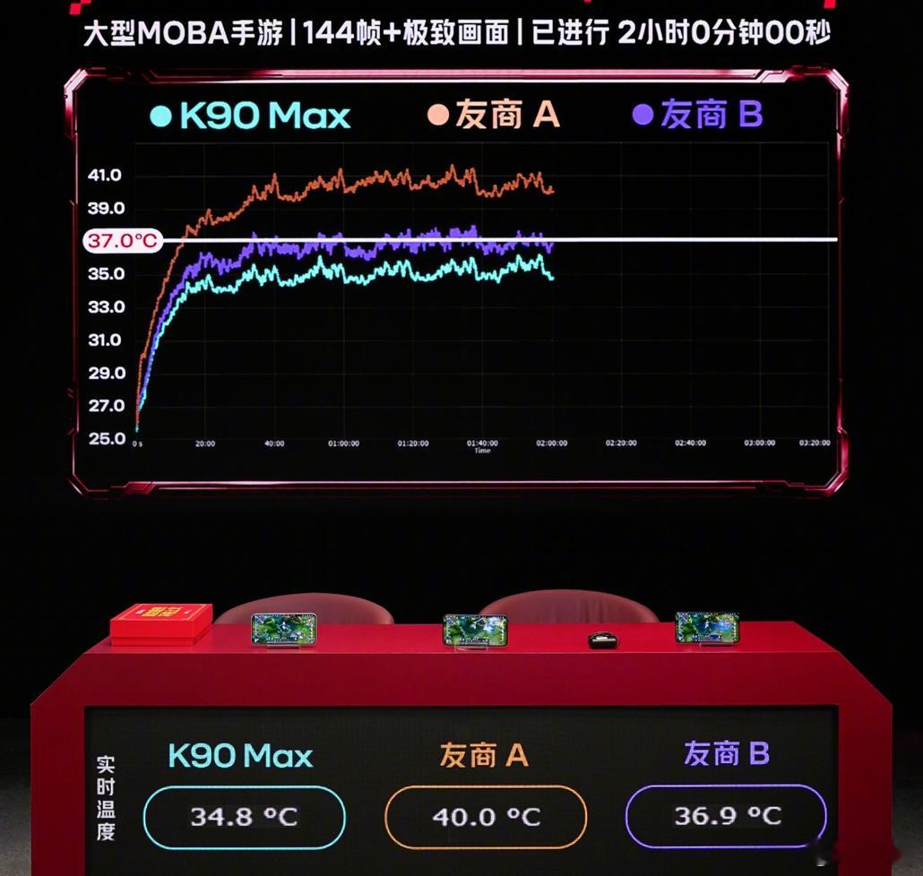 K90Max最强风冷散热 谁能想到,一颗风扇可以把天玑9500的性能潜力彻底释放,让它在游戏表现上完全不输搭载骁龙8 Elite Gen5的旗舰机型。