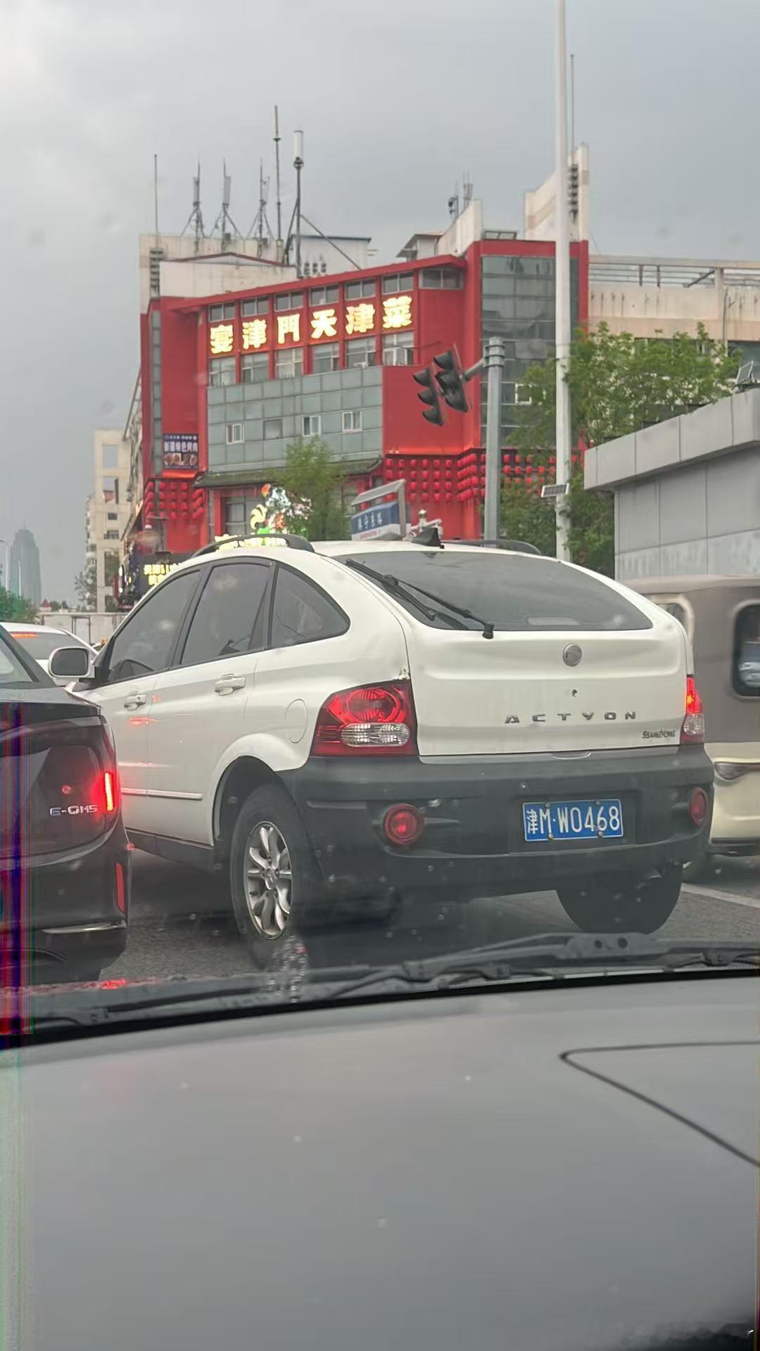 坐车的时候感觉有个拖拉机在自己后面,转头在后视镜里看见一台双龙爱腾,太丑了,辣眼