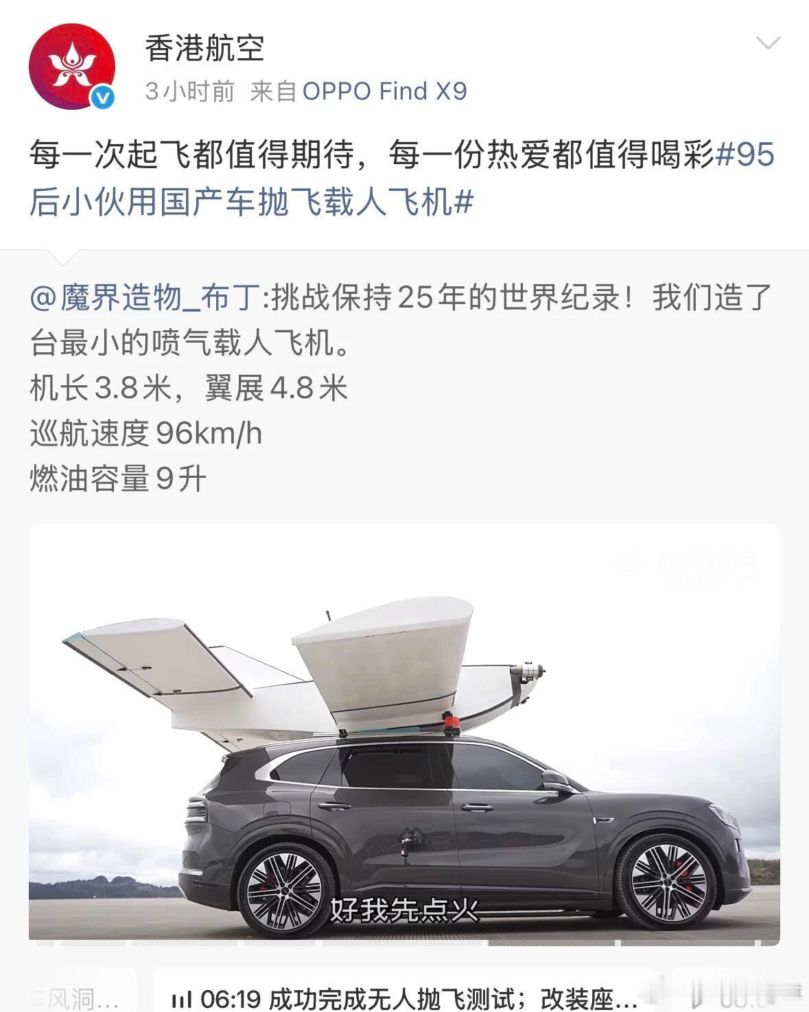 这也足见极氪8X性能的含金量。极氪8X抛飞机95后小伙用国产车抛飞载人飞机