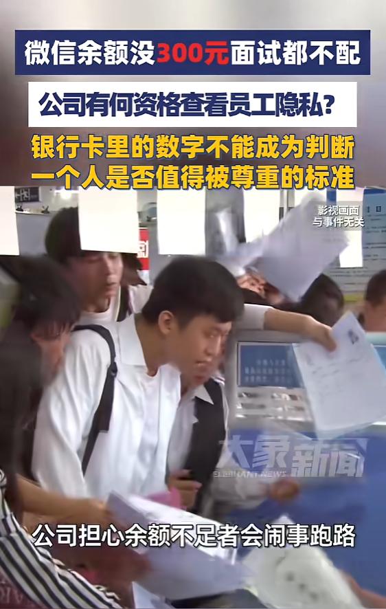 “离了个大谱!”近日,广东深圳,一中介发布面试要求,规定面试者微信余额有300到500元,否则不能面试,有求职者觉得很离谱,就曝了出来,后来中介回应,这个规定是为了防止员工入职不久离职,要工资时引发纠纷而设!网友:干了就要发工资! 事情发生在深圳,有网友在本地求职群里,刷到了一条异常简短的招聘通告,里面没有过多的岗位介绍,反而多了一条奇葩的要求,面试前必须检查微信钱包,余额只有介于300到500元之间,才被允许进入面试室,这条离谱的要求,很快被几位求职者截图转发,没过多久就在本地的职场论坛掀起了一阵议论热潮,大家纷纷吐槽这项要求的不合理。 有人怒斥,这种要求等同于把个人财务状况当作“诚信担保”,面试本是考察求职者的能力和岗位匹配度,和微信余额多少毫无关系,还有人担心这会成为对低收入求职者的隐形歧视,对于长期待业、手头拮据的人来说,微信余额很难稳定在这个区间,这无疑是把他们挡在了面试大门外,断了他们的求职路。 面对全网的质疑和议论,涉事中介公司给出了回应,说辞并不算新鲜,也没有丝毫愧疚之意,他们声称,近期有不少员工在入职短短几天后,就因为手头拮据而闹事,甚至报警投诉索要工资,给公司带来了不少麻烦。 于是他们就想出了这个办法,把求职者的“经济状况”当成了筛选“稳职潜力”的指标,希望通过微信余额的高低,来预判求职者的离职风险,觉得余额达标,就意味着求职者短期内不会因为缺钱而离职、闹事。 这个回应一出不仅没有平息争议,反而让网友们更加愤怒,很多人都觉得,中介的逻辑根本站不住脚,员工入职后闹事、投诉,本质上是薪资发放不到位或者用工不合规,解决问题的关键是规范用工、按时发工资,而不是用微信余额这种奇葩门槛来筛选求职者。 随着事件不断发酵,更多隐情被曝光出来,有记者追踪调查后发现,中介口中“对接工厂要求”,很可能是中介自行加码的临时措施,和工厂没有任何关系。 随后涉事工厂方面公开声明,明确表示根本没有向外包的中介公司,提出过任何关于检查微信余额的要求,还在事件发酵后,立即与该劳务派遣公司解除了合作,显然是想把自己和这场争议彻底划清界限,避免影响自身的品牌形象。 监管部门也很快介入了此事,省级人社部门在收到求职者的投诉后,立即对涉事的劳务派遣机构立案调查,调查的重点的放在了该中介是否构成对个人信息的非法获取和使用上。根据《个人信息保护法》的相关条款,未取得求职者明确授权,就擅自查询用户微信余额,已经触及了隐私侵犯的红线,如果调查结果证实中介存在违规行为,可能会面临行政处罚,甚至更高层面的信用惩戒。 舆论的声音在社交媒体上几乎是一边倒,绝大多数网友都站在求职者这边,大家纷纷认同“干活就该拿工资”这句老话,认为企业想要留住人才,应该靠合理的薪酬、完善的福利和良好的工作环境,而不是用这种奇葩的财务门槛来筛选求职者。 对于许多长期处于待业状态的打工族来说,钱包里的数字本就不稳定,有时候为了维持基本生活,余额甚至不足300元,中介的这项要求,无疑是给他们的求职之路又添了一道障碍,其实想要降低员工离职率,中介和企业应该多从自身找原因,提升岗位吸引力、完善岗前培训、明确职业发展路径,而不是把求职者钱包里的几百块钱,当成他们不稳定的象征。 从法律层面来说,中介单方面制定并执行这种“钱包门槛”,无论出于何种动机,都可能被认定为对求职者的歧视行为,既违背了劳动市场的公平原则,也侵犯了求职者的个人隐私,目前相关部门的立案调查仍在进行中,并且已经明确表达了将依据法律法规严肃处理的意向,相信会给求职者一个合理的交代。 这场围绕微信余额的面试门槛风波,最受伤的还是那些本就承担着生活压力的求职者,他们的隐私被公开检视,尊严被这种奇葩要求践踏,甚至连公平面试的机会都被剥夺,其实招聘本该是一场公开、透明的双向选择,企业考察求职者的能力,求职者了解企业的用工理念,而不是让求职者在钱包的数字面前踟躇不前,只有企业、求职者和监管三方达成共识,才能打造一个公平、健康的职场环境。 (信息来源:《没300元面试都不配,公司有何资格查看员工隐私?》大象新闻)
