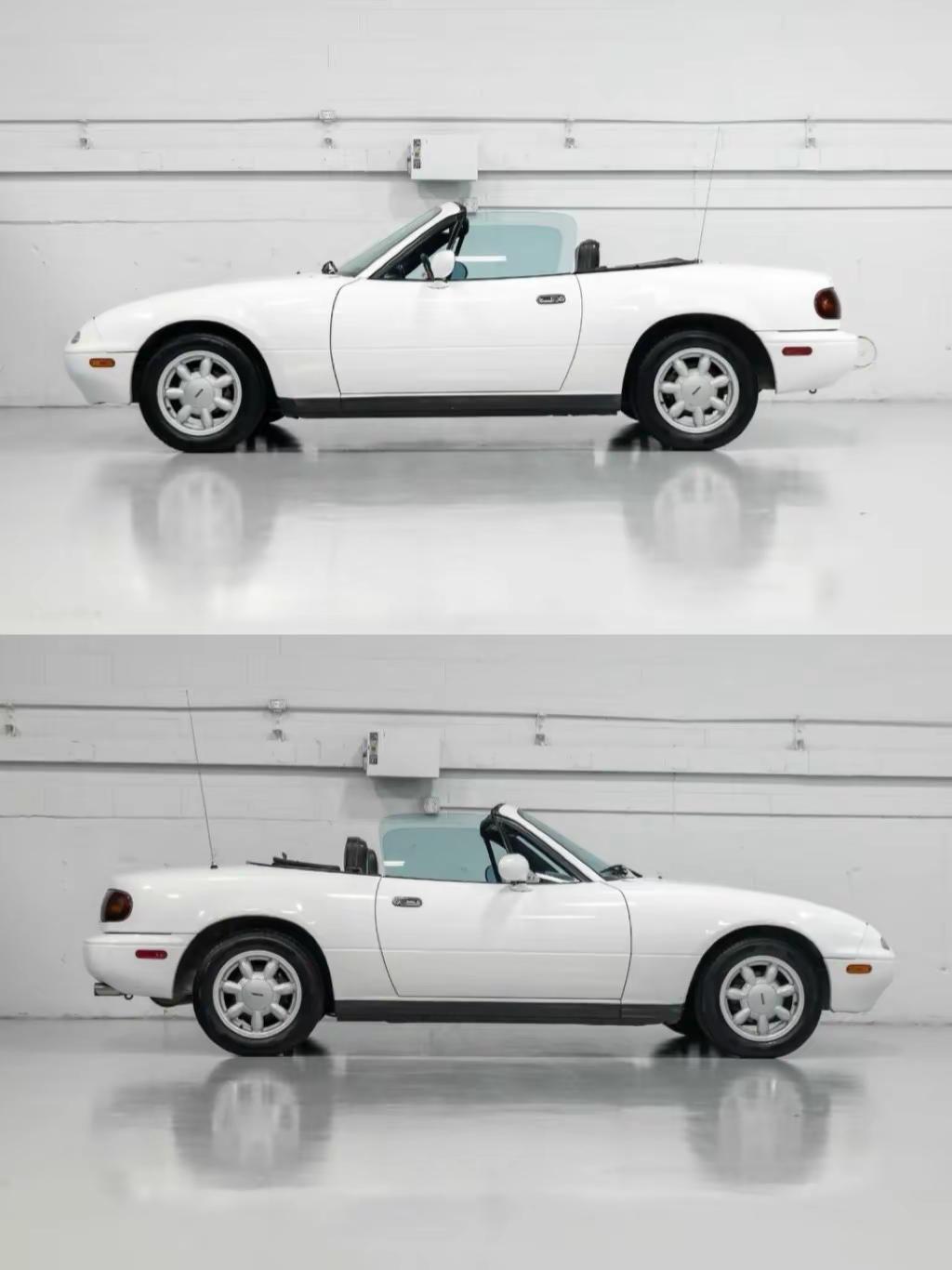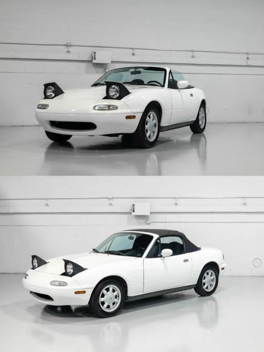 Mazda MX-5 Miata.这台 1991 款 Mazda MX-5 Miata,正是那种一眼就能让人想起“驾驶乐趣”本身的车。作为第一代 NA 车型的代表作之一,它延续了 Mazda 当年对轻量化、后驱布局和纯粹操控的执着,把一台看似简单的小跑车,做成了 1990 年代最具标志性的运动机器之一。如今这台车表显仅 37,090 英里,约合 5.97 万公里,白色车身保持得相当干净,整体状态非常克制,没有过度修饰的痕迹,反而更显得真实、耐看,也更接近老车爱好者心中那种“原味”的味道。动力方面,它搭载的是 1.6 升直列四缸发动机,匹配 5 挡手动变速箱与后轮驱动系统。对于今天的标准来说,它的数据并不张扬,但 Miata 的魅力从来不靠参数堆砌,而是靠车身足够轻、重心足够低、转向足够直接,把每一次加速、过弯、收油都变成一种很有参与感的交流。更难得的是,这台车目前依然保持全原厂姿态,内饰、车况和整体呈现都相当完整,底盘与车身也被描述为无锈、保存良好,再加上近期完成保养,让它不只是“能看”,更是那种随时可以开出去,慢慢体验机械质感的经典敞篷小跑车。如果说 90 年代的很多跑车是在追求速度,那么 NA Miata 追求的,是一种更轻盈、更纯粹、也更容易让人上瘾的驾驶快乐。它没有复杂的姿态,却把“好开”这件事做到了极致。对于今天的车迷来说,这样一台保留原貌、状态干净、里程合理的早期 Miata,不只是代步工具,更像是一段被完整保存下来的黄金时代记忆。马自达mx5 经典情怀老车 日系跑车 汽车知识
