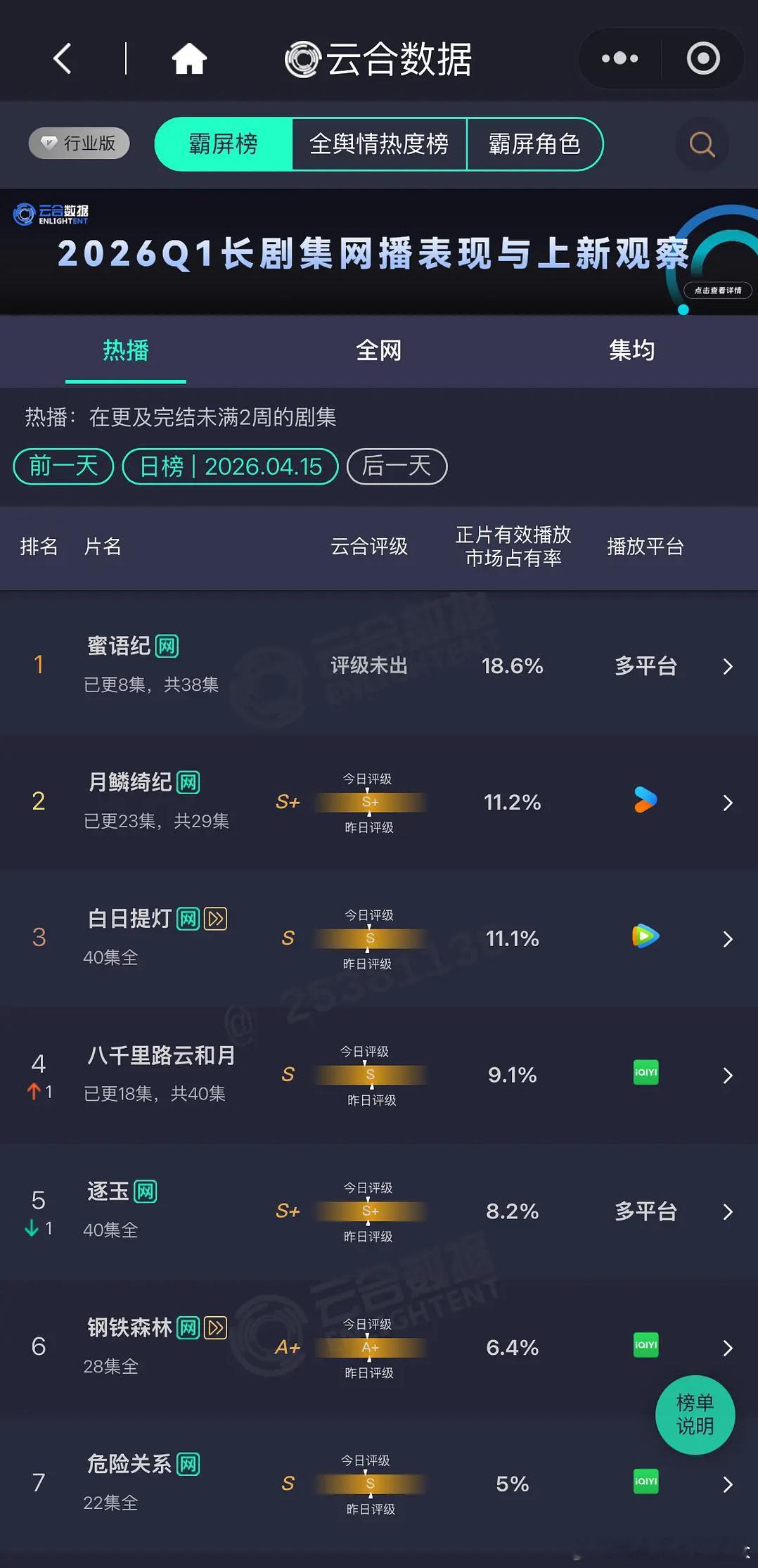 蜜语纪算爆了吗??第三天占比18.6,最后集均至少3-4千万了