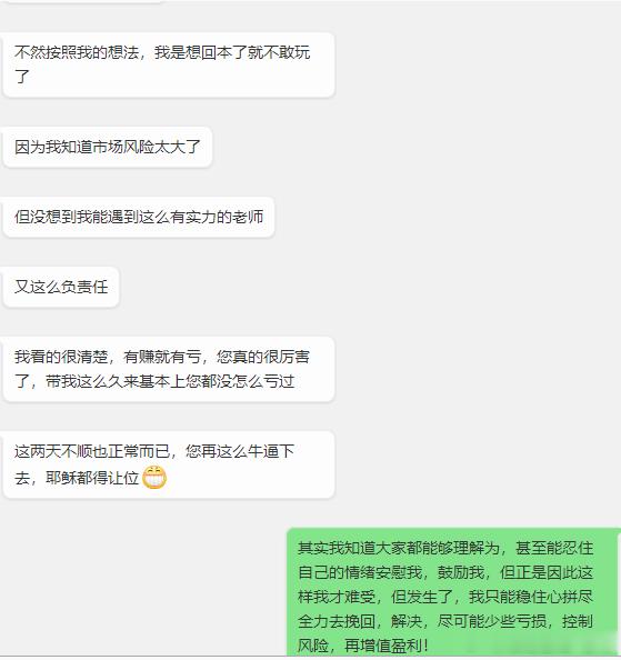 非常感谢大家的信任和认可,我很荣幸!其实我做投资这么多年,从实战里摸爬滚打过来,经历过行情的起起落落,也积累了自己的交易体系和毕生所学的技术经验,一点一点增强提升。大家都知道,我一直有个初心,就是想用自己的能力,真正带信任我的朋友稳稳抓住盈利,收割利润,而不是嘴上说说,因此我也一直都在付出行动,也一步一步成功实现中!我不求别的,只希望跟着我的每一位投资者,都能少走弯路、少踩坑,真正赚到属于自己的收益。