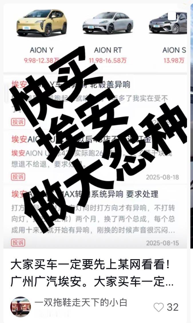 4月16日埃安N60新品时尚大秀 一看这车还挺有意思,隔壁平台搜了下埃安质量。老谭喷车说广汽埃安Y家用车避坑TOP1这辆车千万别碰;还有说快买埃安做大冤种,甚至还有说车不值得购买,严重电量虚,行驶行驶起来噪音大等问题。有懂行的来说说,埃安的质量到底怎么样?