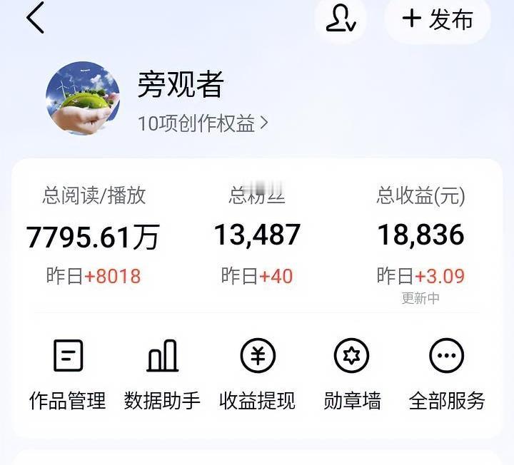 千次阅读单价涨了四倍,这个办法真有效果。 说一下我的经历吧,写作三四年,刚开始单价高达3块多,再差也有一块多。 但是近一年来单价暴跌,始终在1毛钱左右徘徊,低到怀疑人生。 以前发文方向五花八门,热点事件、社会生活等等,耗尽了精力。可以说账号基本已经废了。 说实话更换写作方向,是很冒险的决定,但是与其坐以待毙,不如放手一搏,不如放手一搏,而且我相信是可以“起死回生”的。 于是我开始尝试新方向—和大家分享这几年的写作感悟。 第一天没有阅读量; 第二天没有阅读量和收益; 第三天3000个阅读量,收益2毛多,千次阅读单价不到1毛; 终于第四天,单价涨了,将近4毛,翻了三倍。 可别小看这几毛的单价,这可是我一年多没出现过的情况,这说明我的决定是正确的。 而且不仅单价再涨,阅读量、互动数、粉丝数一样在涨,仿佛账号注入了新的活力,而这也仅仅是第4天。 大家辛苦创作不都是为了碎银几两,原来只要方向正确了,一切都会好起来。