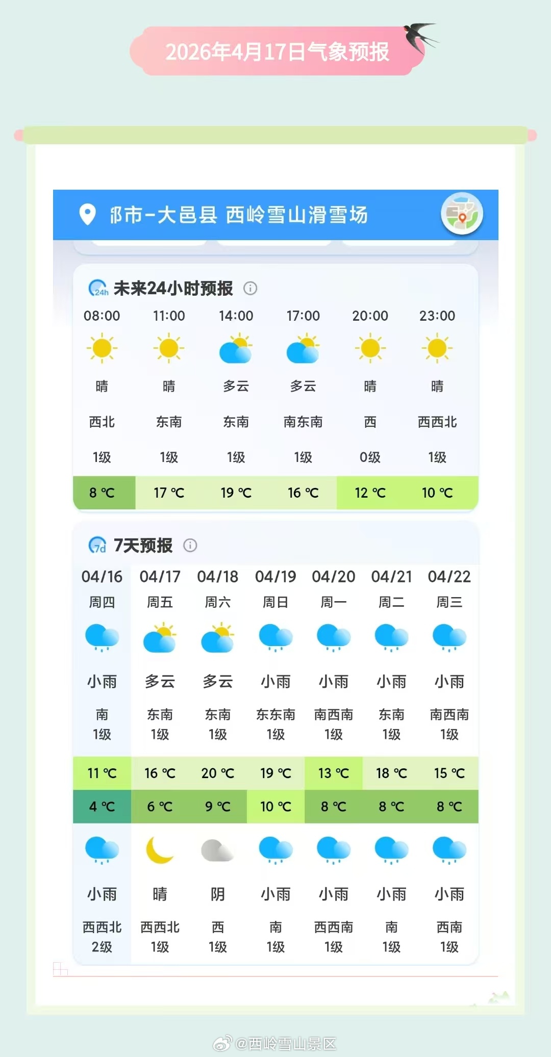 西岭雪山4月17日(周五)气象预报#西岭雪山 #