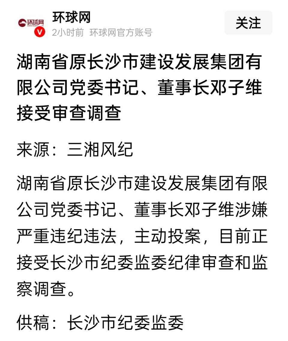 湖南省原长沙市建设发展集团有限公司董事长邓子维被查