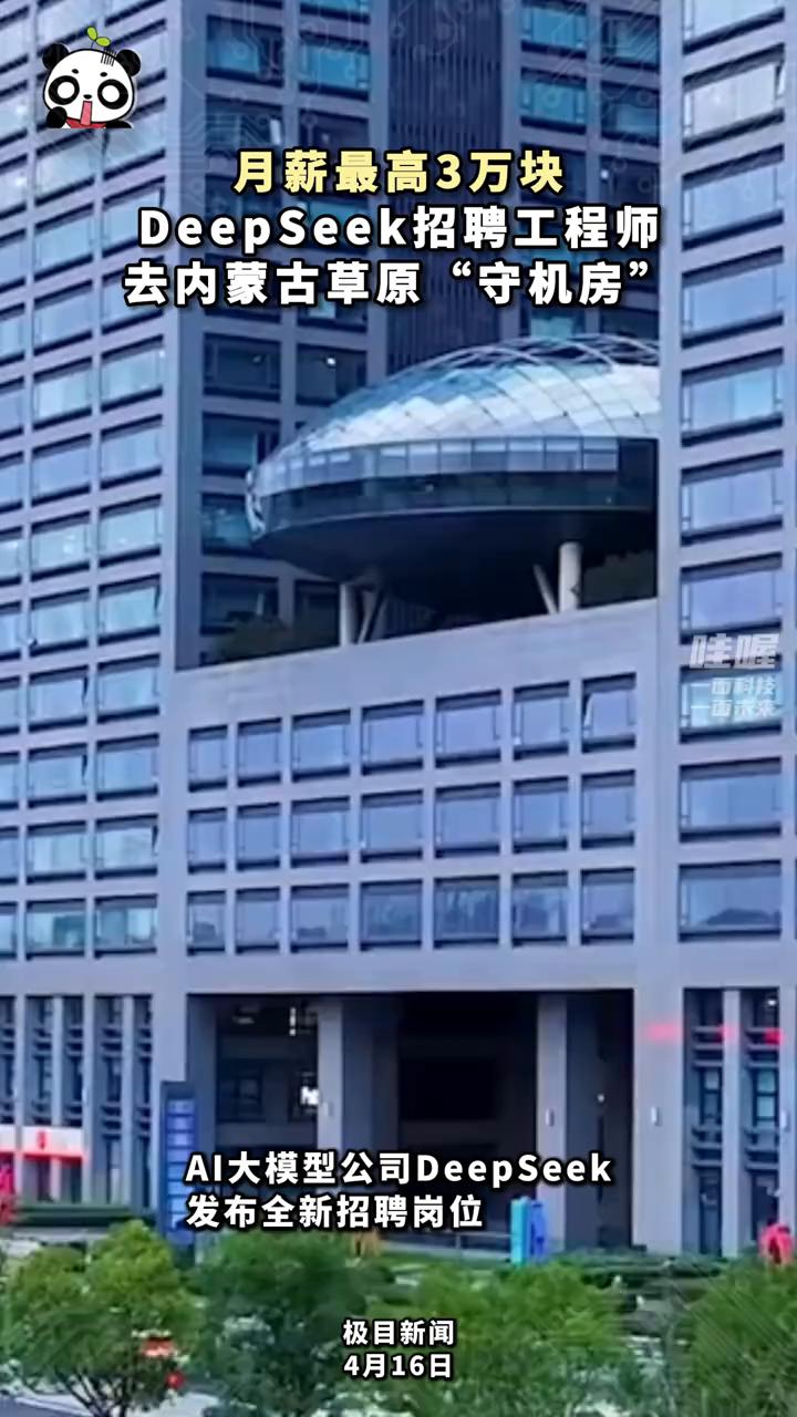 月薪最高3万块,DeepSeek招聘工程师去内蒙古草原"守机房"。 极目新闻。 4月16日,AI大模型公司DeepSeek发布全新招聘岗位。此次招聘岗位为数据中心高级交付经理、数据中心高级运维工程师,月薪最高达30000元,工作地点则在乌兰察布。 这是DeepSeek首次公开招聘直接负责计算基础设施运营的实地岗位,标志着DeepSeek正式从纯算法研发延伸至物理算力基础设施的自建与运营。