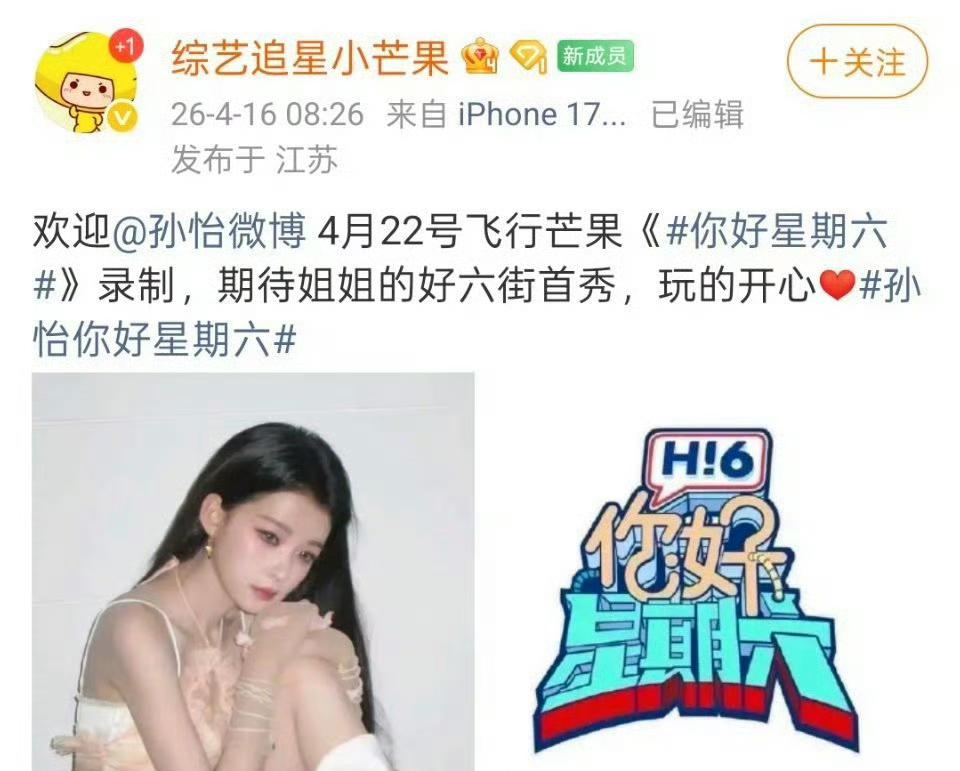 阚清子孙怡将一起录制你好星期六! 这绝对是一个好消息。 解铃还需系铃人。 🥭台搞的事还是它来平息。 🥭官宣两位美女录制hi6,那么少不了互动。 那就请美女姐姐们和好吧。 本来就是节目组的错,那就不要因为一次比赛影响友谊和口碑啊。