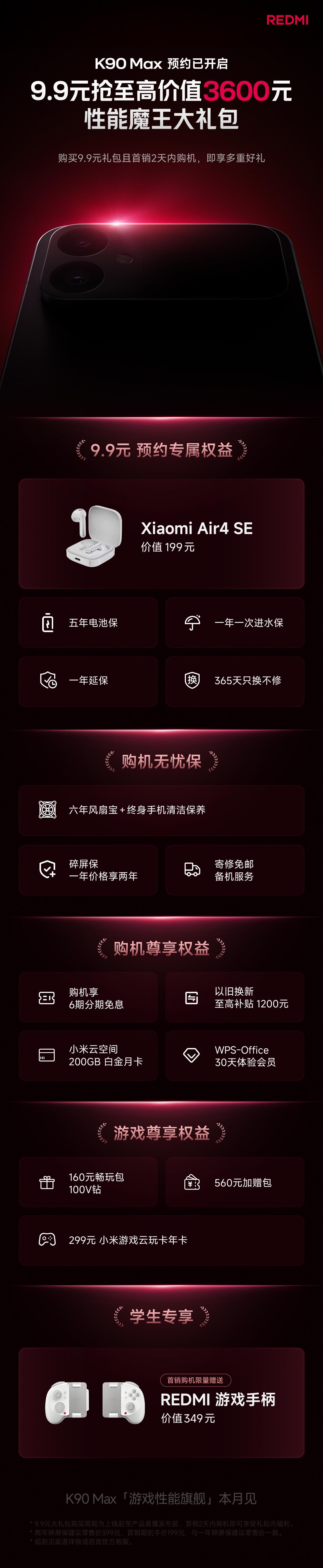 4月21日红米发布会上将发布的两款产品REDMI K90 Max和REDMI K Pad2日前引发了大众热议:在性能与温控之间取得平衡,是游戏设备的重要能力。REDMI K90 Max通过天玑9500处理器与独显芯片,并结合行业最强风冷主动散热,实现持续稳定输出。连续4小时高强度游戏依旧满帧不发烫,同时配备165Hz高刷屏与BOSE对称式双扬声器,提升整体游戏体验。在各大平台搜索REDMI K90 Max,还能9.9元领取价值3600元性能魔王大礼包,这波羊毛我先薅了!K90Max玩游戏还是太权威了