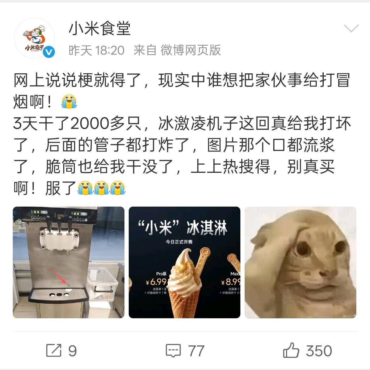 依我看,小米食堂完全可以剥离手机和汽车业务独立上市!还没对外开放就把冰激凌机打冒烟了……
