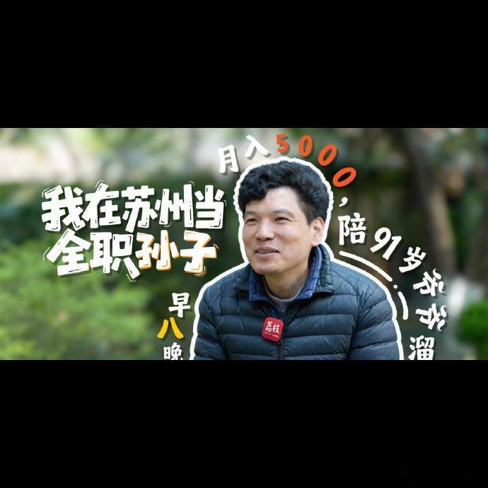 陪91岁大爷玩手机月入5000 💻 苏州36岁小伙俞俊从缝纫机厂转行,做“全职孙子”陪伴91岁独居大爷,不用端屎端尿、擦身做饭,只是陪大爷逛公园、玩手机、听评弹,就能月入5000,苏州36岁小伙俞俊从缝纫机厂转行,做“全职孙子”陪伴91岁独居大爷,不用端屎端尿、擦身做饭,只是陪大爷逛公园、玩手机、听评弹,就能月入5000。,具体情况还需要更多信息
