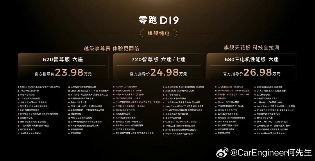零跑D19满配豪华上市21.98万起零跑这个价格,不卖好都很难啊。增程版,和纯电版,都很实惠。