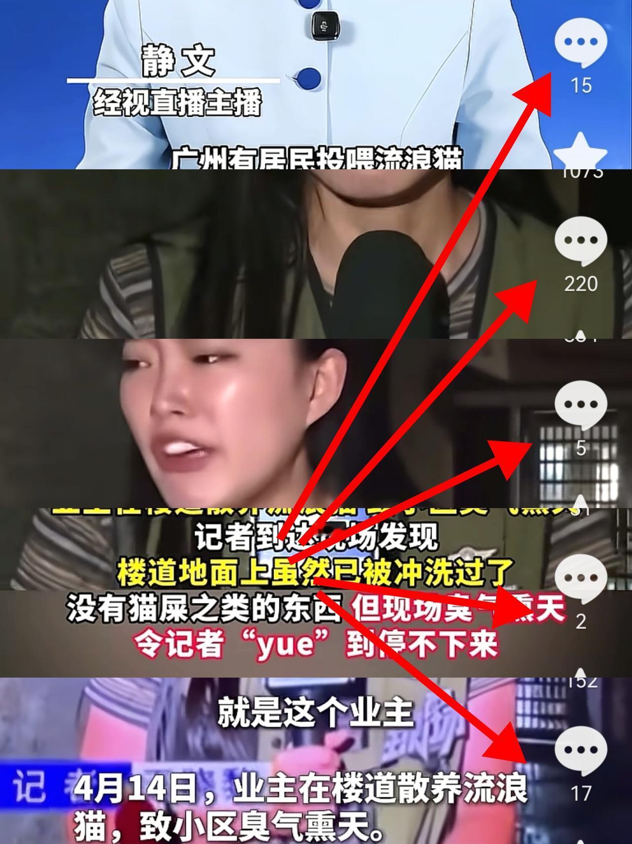物业拆流浪猫窝:千条评论强烈谴责 流浪猫让小区臭气熏天:鸦雀无声集体沉默 流浪动物保护是真爱还是伪善,广州这位女记者在小区采访时反复干呕,就因为居民散养流浪猫导致环境变差,可想而知其他居民的感受,物业又忌惮动保人士的“爱心”不敢轻易清理,只能靠媒体帮忙,而面对让记者都受不了的环境,那些喊着保护流浪动物的爱心人士又假装看不见,一言不发,看看截然不同的评论区就知道区别有多大。