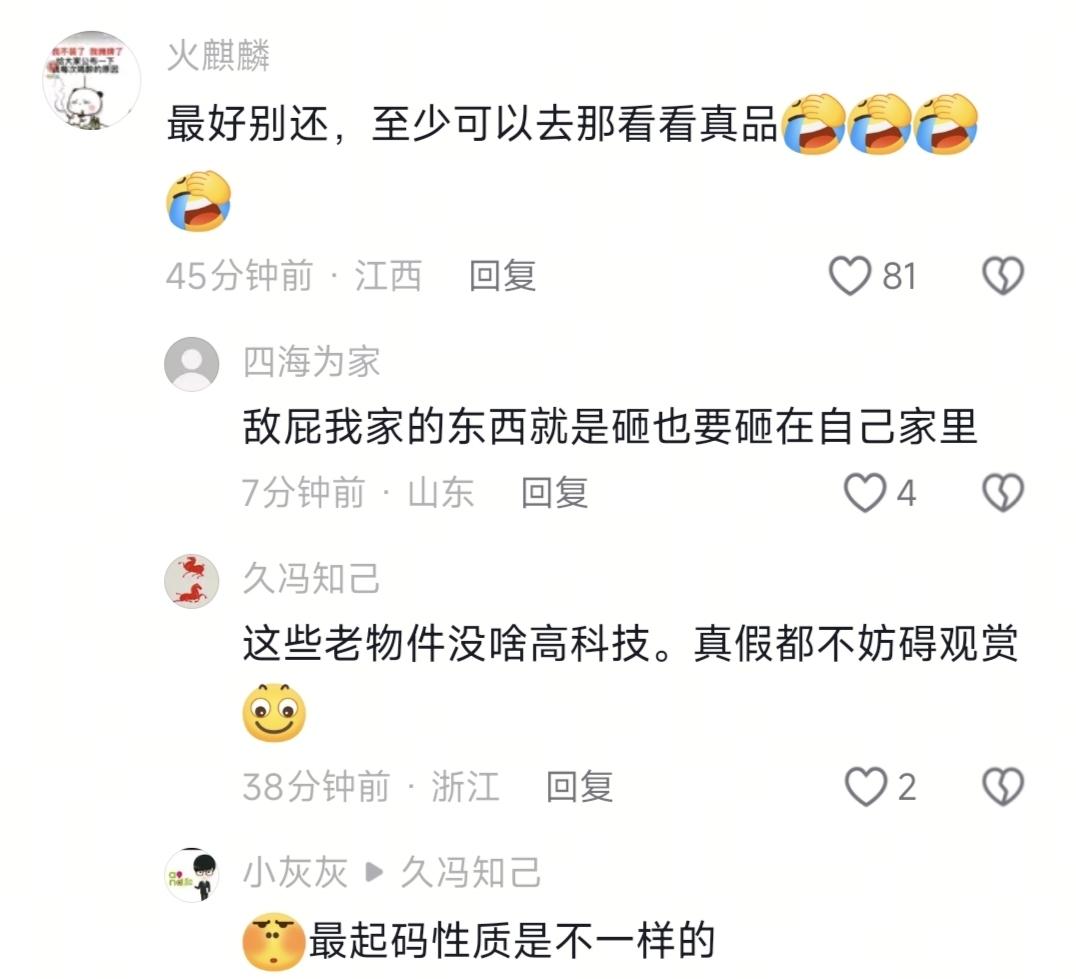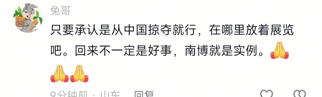 法国全票通过文物归还法案!本来挺高兴,一看评论区血压直接拉满 圆明园文物终于要回家了!可有些网友的话,真让人寒心 法国都松口还文物了,评论区却在劝我们“别要了”?太离谱 刚看到新闻真的挺激动: 法国国民议会170票全票通过文物归还法案! 覆盖1815—1972年掠夺的文物,圆明园、敦煌的国宝,终于有了合法回家的路。 雨果当年骂英法联军是强盗,盼着“干干净净的法兰西把赃物还给中国”,今天终于迈出这一步。 真的,那一刻特别欣慰:国家越来越强,流失百年的国宝,终于看到回家的希望。 结果翻了下评论区,我直接气笑了—— 一堆人在那阴阳怪气、劝人大度: “放哪都一样,只要他们好好保护。” “留在国内说不定早毁了,在国外博物馆更安全。” “抢不走中华文化,没必要纠结几件东西。” “人家都愿意还了,别得寸进尺。” 我真想问:你们到底懂不懂?这不是东西,这是国耻、是主权、是底线! 1. “放哪都一样”?这是被抢的赃物,不是礼物! 圆明园的青铜器、佛首、书画,是1860年英法联军一把火烧了园子、明火执仗抢来的。 不是赠送、不是买卖,是侵略、是掠夺、是国难! 放在法国博物馆,叫“战利品展览”;回到中国,才叫“历史归位”。 故事不一样、尊严不一样、历史定性完全不一样。 被抢的东西,必须回家——这叫天理,这叫公道! 2. “在国外更安全”?罗浮宫都被盗,他们配说“保护”? 去年欧洲博物馆连环失窃,法国皇室珠宝、中国文物被盗的新闻还少吗? 罗浮宫安保都漏洞百出,连自己的东西都看不住,凭什么替我们“保管”国宝? 再说:当年的动荡,不就是西方侵略造成的吗? 搞反因果、替强盗洗地,真的很可悲。 就算真有损毁,也轮不到强盗来“替我们保管”——这叫产权,叫主权! 3. “抢不走文化”?文物就是文化的根,是历史的证! 文物不是破铜烂铁,是文明的载体、历史的铁证、民族的记忆。 敦煌文书、圆明园鎏金佛、商周青铜——离开中国,就是断根的文化、被篡改的历史。 西方把抢来的文物贴标签“东方奇珍”,绝口不提“掠夺”二字。 你不要,就是默认强盗叙事;你要回来,才是守住历史的尊严! 4. 最讽刺的是:法国都在还,有些人却在劝我们“算了” 法国都知道当年抢的不对,现在立法归还, 侵略者的后代都在认错,我们自己人却在替强盗洗地、劝同胞大度? 这才是最让人寒心的地方。 最后说一句硬气的: 文物必须回家,不是我们小气,是历史必须清白,国耻必须正视,主权必须捍卫。 法国愿意还,是应该;我们坚持要,是本分。 谁爱大度谁大度,我只知道:被抢走的东西,一件都不能少! 看到这种评论你气不气?你支持文物必须回家吗?评论区说说!