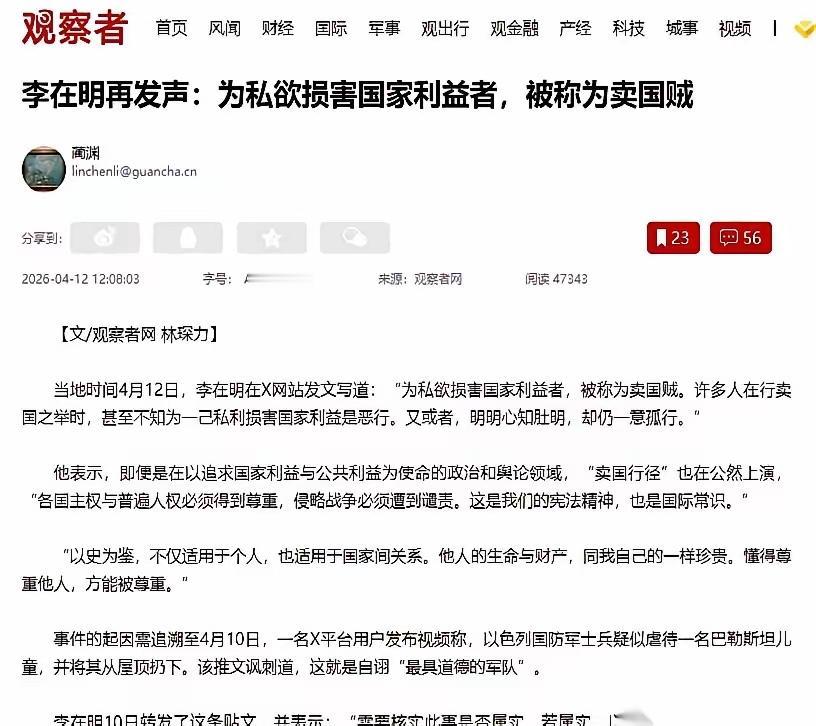 我敢说,李在明三个字炸穿韩国政坛,这波操作直接撕开了韩国外交最真实的一面。 一句“卖国贼”,瞬间引爆全网,韩国政坛彻底乱了套。起因是他发声谴责以军对待巴儿童的行为,直指违反国际法,立刻遭到以色列强硬谴责,韩国执政党也火速发难,指责他破坏外交、影响国家利益。 面对多方施压,李在明丝毫没有退让,直言为私利损害国家利益的人,就是卖国贼,暗批那些一味依附强权、放弃人权底线的势力。他坚持主权与人权应当被尊重,这才是一个国家该有的立场,而非为了外交妥协丢掉良知。 这哪里是简单的舆论争执,分明是韩国两种外交路线的正面碰撞。一味讨好强权换不来尊重,坚守底线、守住良知,才是真正维护国家尊严。你觉得,政客该为利益妥协,还是该坚守正义底线?