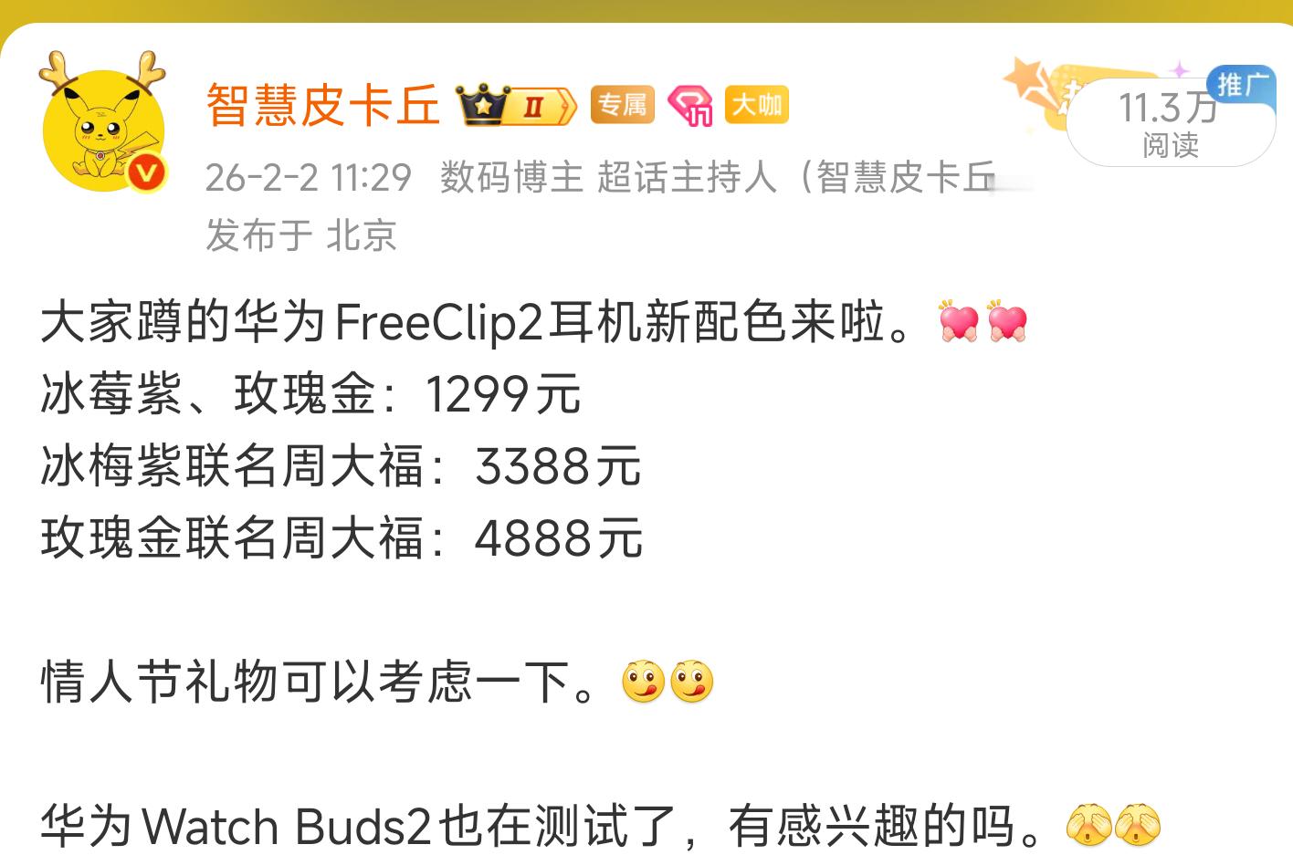 新品驾到华为Watch Buds2智慧皮卡丘