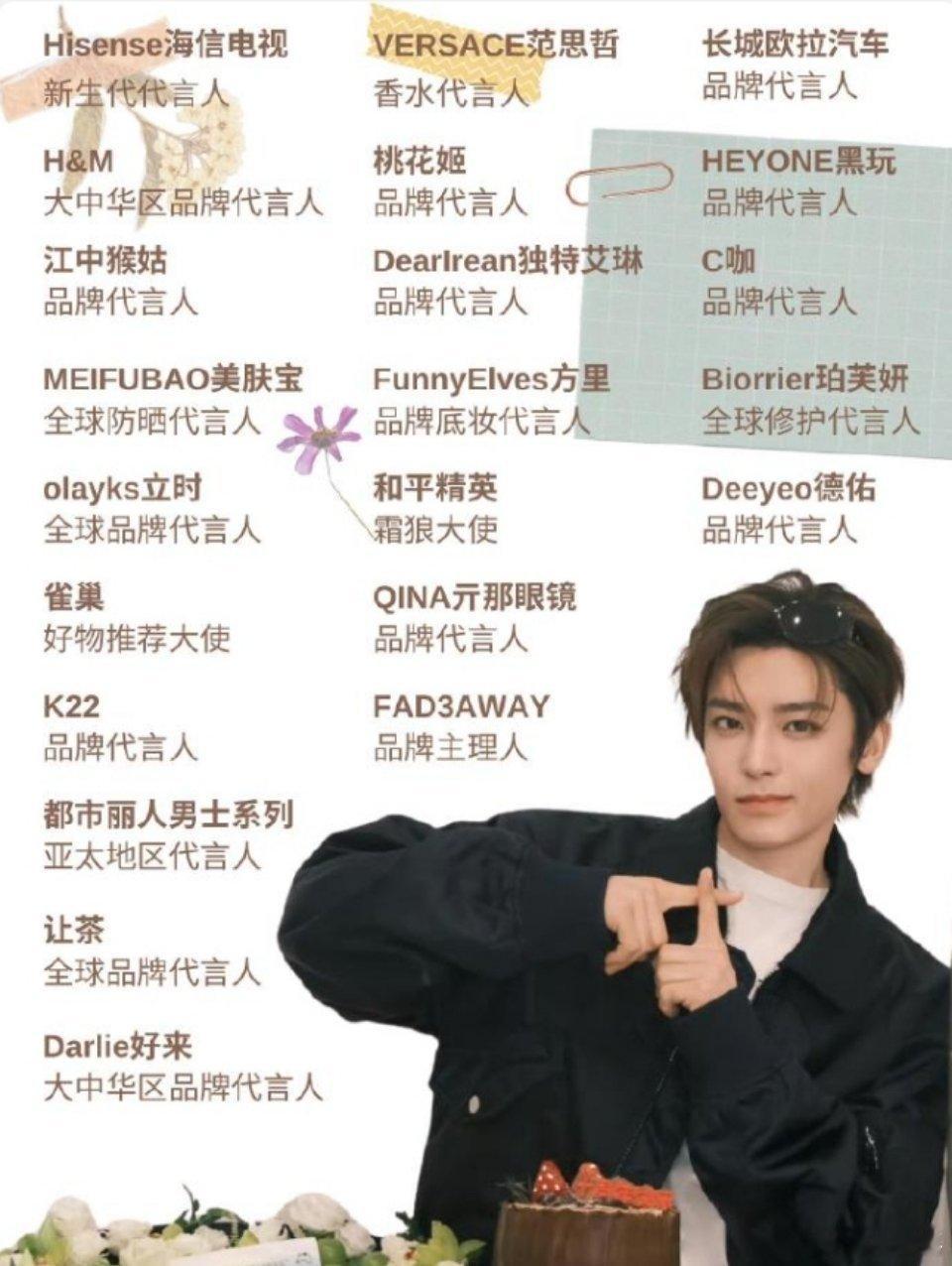 侯明昊6年至今已经官宣13个新代言了,只有一个大使,其余全是代言人,但是部分title给的不高,别人给的是全球代,他给的是品牌代或者大中华区,以新增商务数量来看是爆咖的待遇,但是貌相他近一年也没有比较爆的角色,不过已经取代丁禹兮成为内娱新增代言数量最多的男艺人,侯明昊