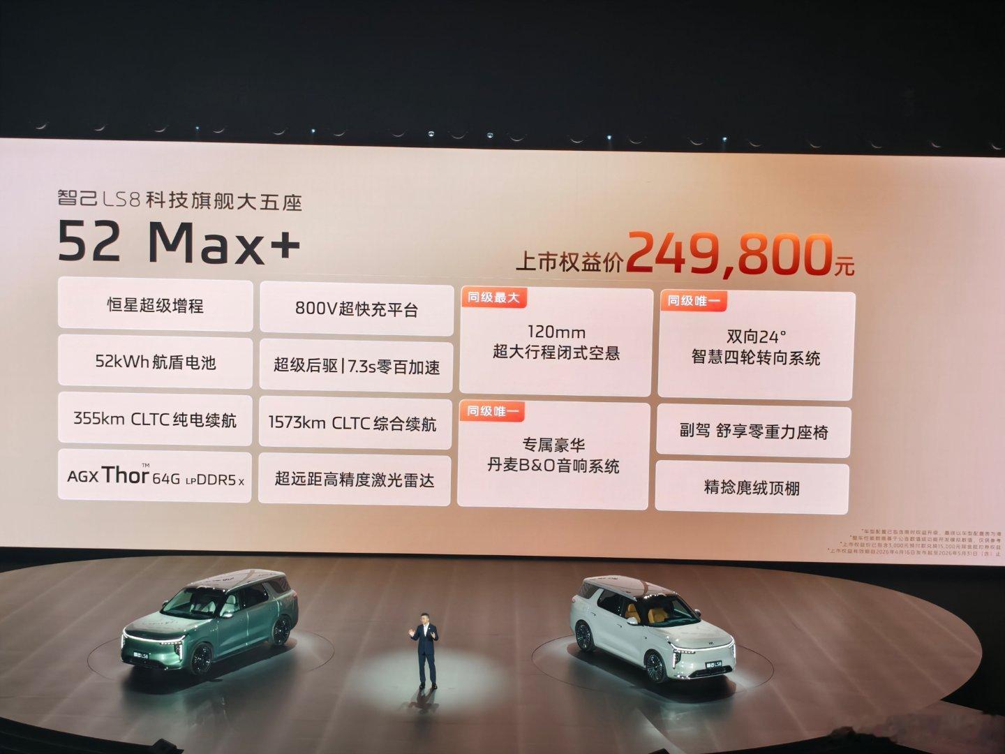 刚蹲完智己LS8的上市发布会,属实被国产新能源的底蕴惊到了!奥运冠军刘翔现场站台,一句“中国新能源车太顶了”,简直说到心坎里。24.98万起就能拿下这台旗舰SUV,配置堆得太夸张。120mm空悬+激光雷达,烂路也能如履平地;800V快充+1500+km续航,出行彻底没焦虑。双向24°四轮转向,这么大的车身居然能灵活穿梭,B&O音响+零重力座椅,把移动座舱坐出了头等舱的感觉。限时权益还能0元升级核心配置,花合资A级车的钱,直接买到了旗舰级体验。如今国产新能源不仅有技术硬实力,更懂国人用车需求,这台智己LS8,绝对是25-30万区间绕不开的真香选择!刘翔直言中国新能源车太顶了智己LS8震撼上市24.98万起